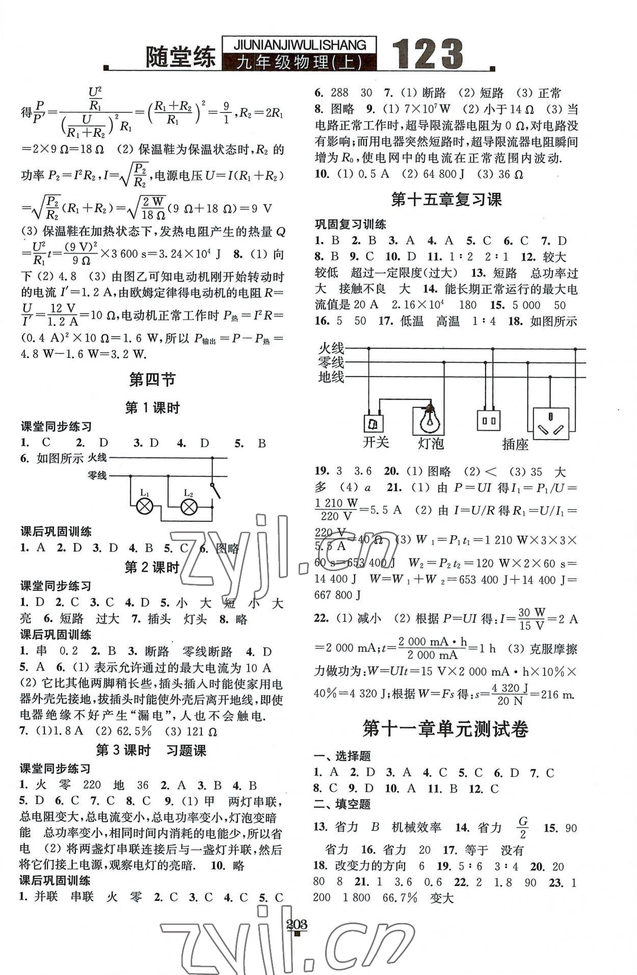 注:目前有些书本章节名称可能整理的还不是很完善,但都是按照顺序排列的,请同学们按照顺序仔细查找。练习册 2022年随堂练123九年级物理上册苏科版 答案主要是用来给同学们做完题方便对答案用的,请勿直接抄袭。