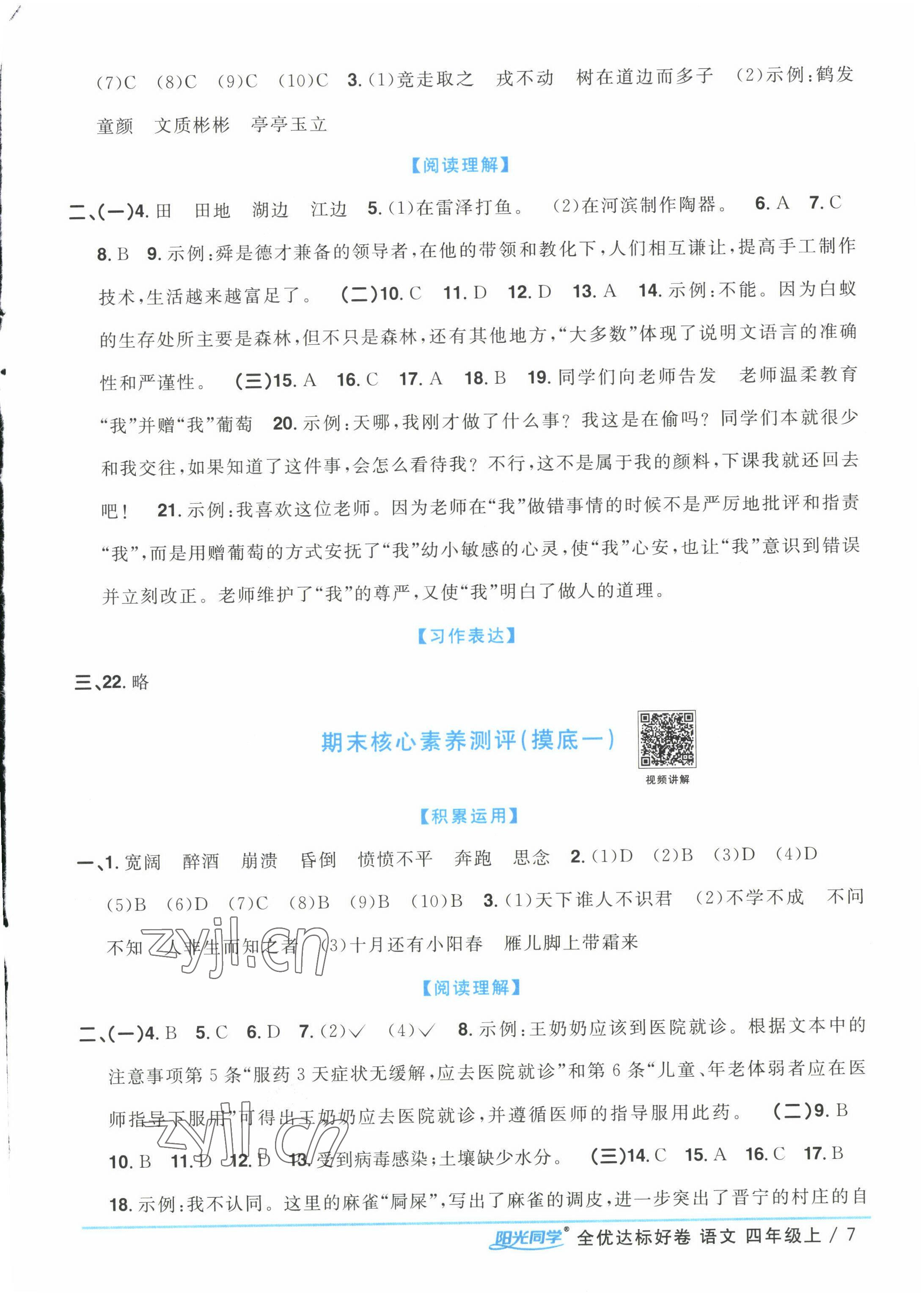 《2022年阳光同学全优达标好卷四年级语文上册人教版浙江专版》