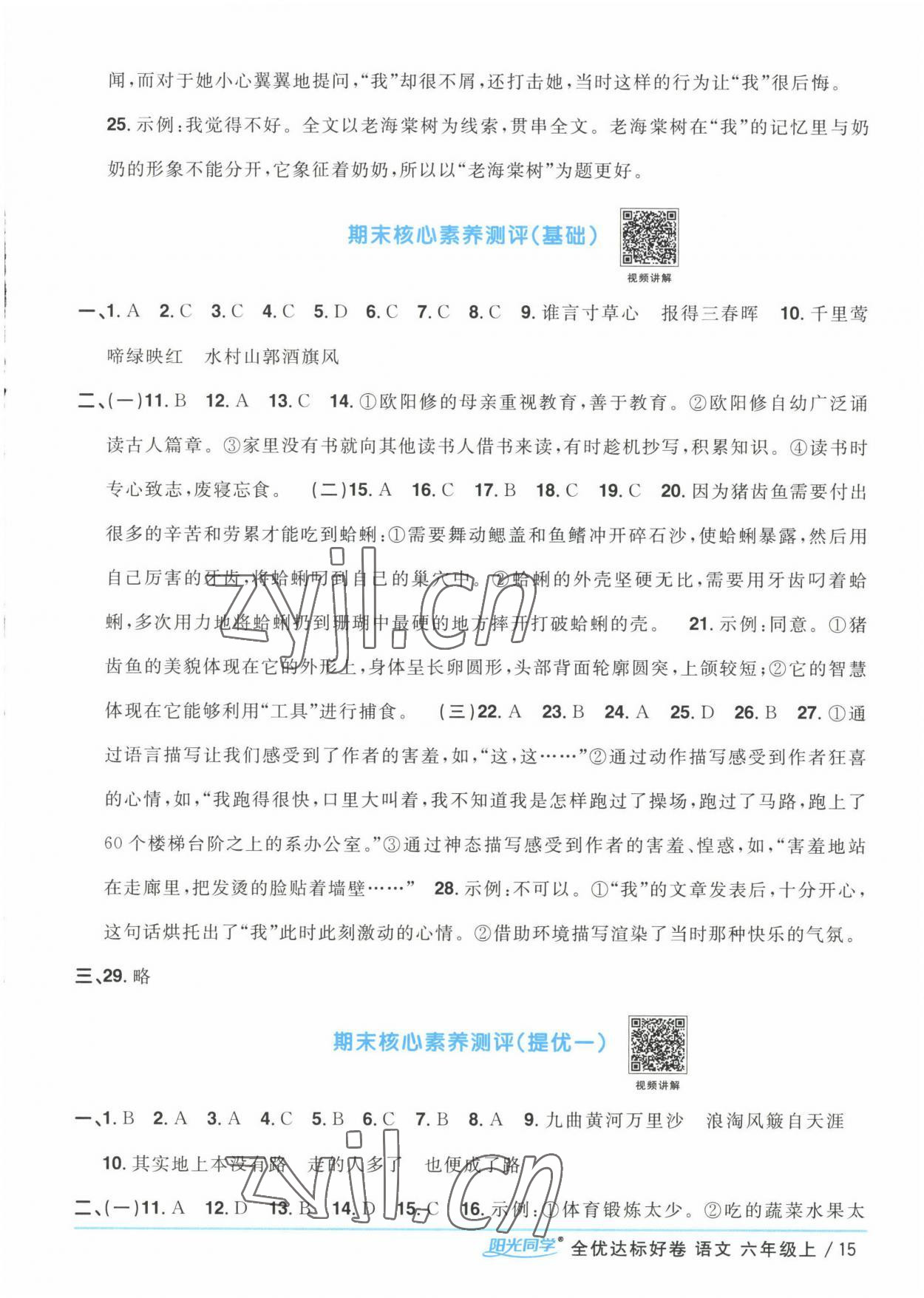 注:目前有些书本章节名称可能整理的还不是很完善,但都是按照顺序排列的,请同学们按照顺序仔细查找。练习册 2022年阳光同学全优达标好卷六年级语文上册人教版浙江专版 答案主要是用来给同学们做完题方便对答案用的,请勿直接抄袭。