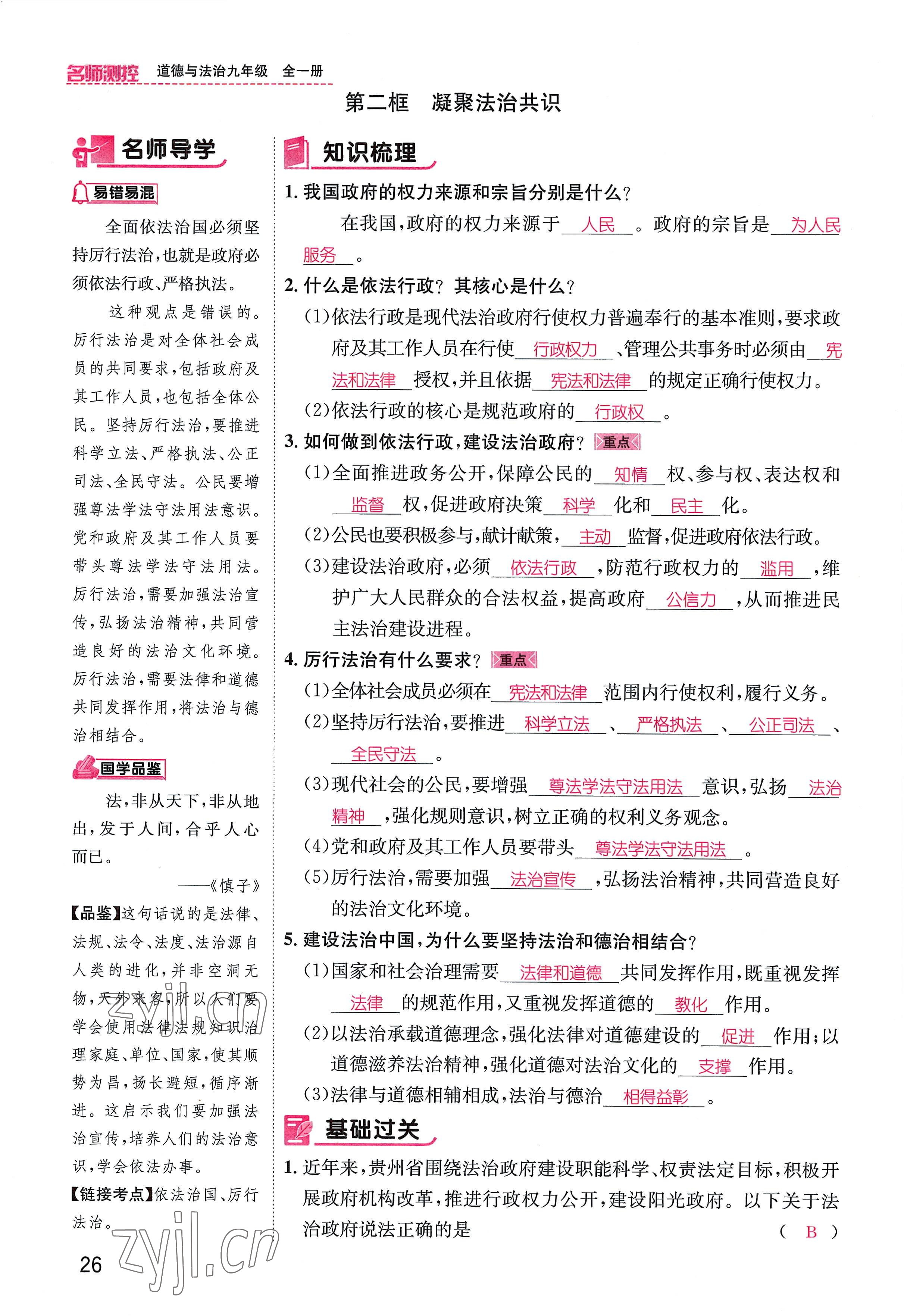 注:目前有些书本章节名称可能整理的还不是很完善,但都是按照顺序排列的,请同学们按照顺序仔细查找。练习册 2022年名师测控九年级道德与法治全一册人教版贵阳专版 答案主要是用来给同学们做完题方便对答案用的,请勿直接抄袭。