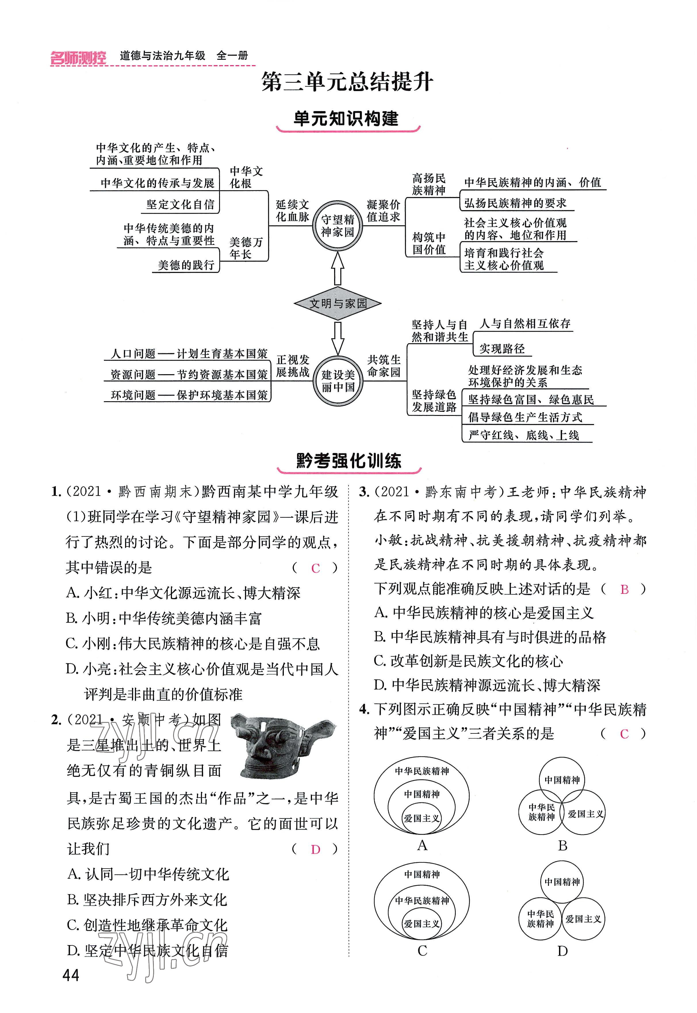 注:目前有些书本章节名称可能整理的还不是很完善,但都是按照顺序排列的,请同学们按照顺序仔细查找。练习册 2022年名师测控九年级道德与法治全一册人教版贵阳专版 答案主要是用来给同学们做完题方便对答案用的,请勿直接抄袭。