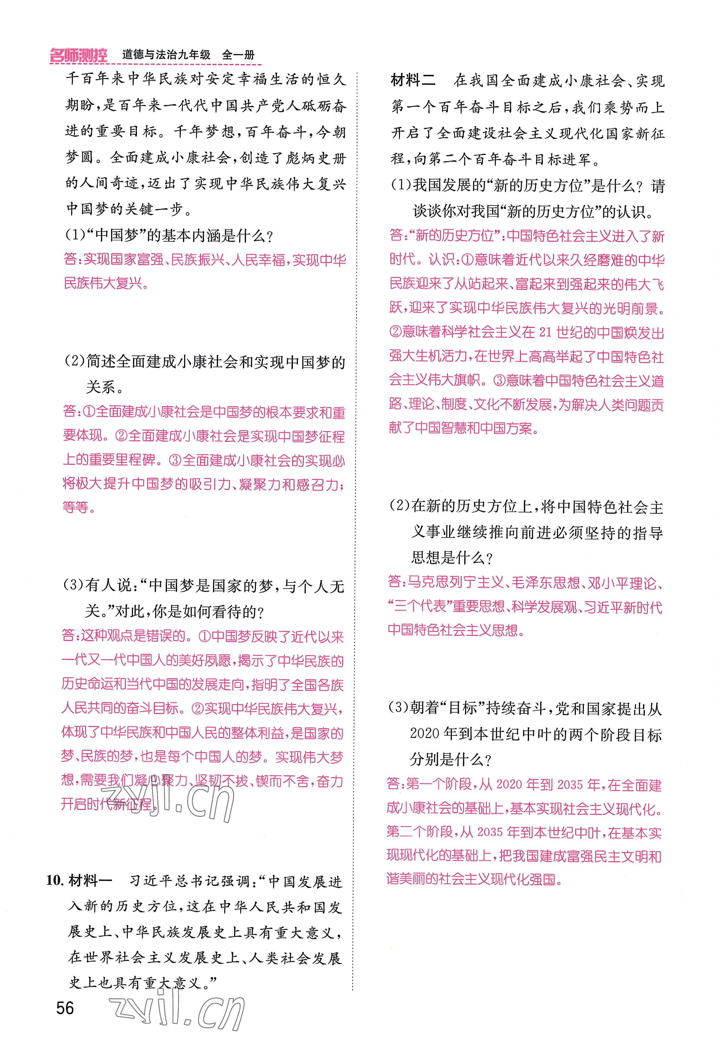 注:目前有些书本章节名称可能整理的还不是很完善,但都是按照顺序排列的,请同学们按照顺序仔细查找。练习册 2022年名师测控九年级道德与法治全一册人教版贵阳专版 答案主要是用来给同学们做完题方便对答案用的,请勿直接抄袭。