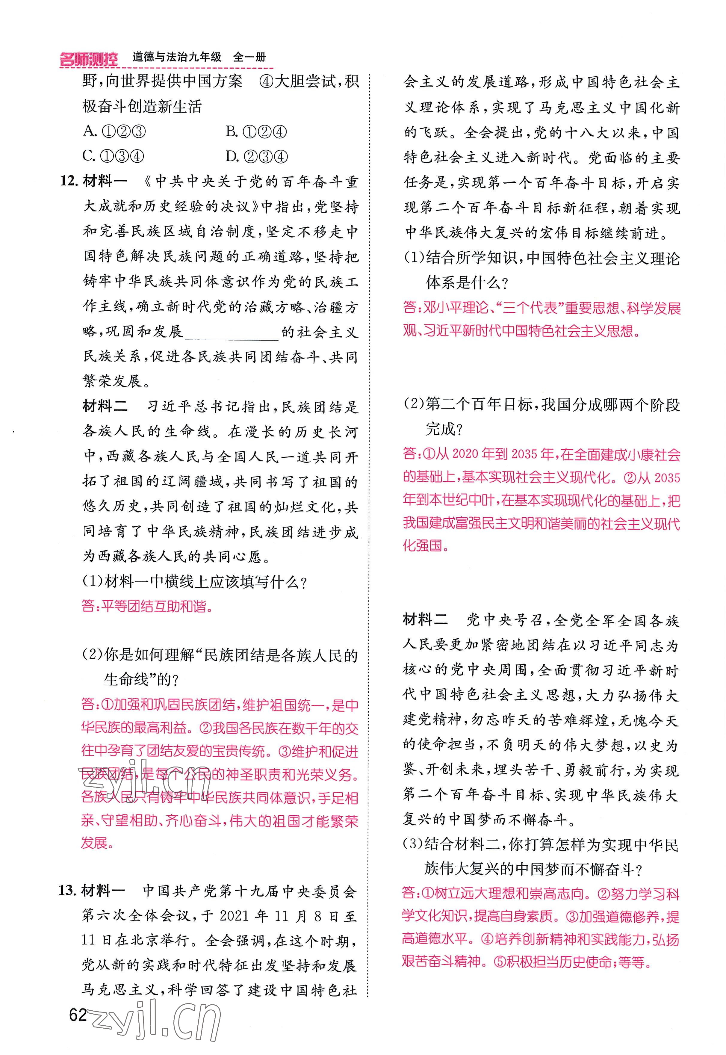 注:目前有些书本章节名称可能整理的还不是很完善,但都是按照顺序排列的,请同学们按照顺序仔细查找。练习册 2022年名师测控九年级道德与法治全一册人教版贵阳专版 答案主要是用来给同学们做完题方便对答案用的,请勿直接抄袭。