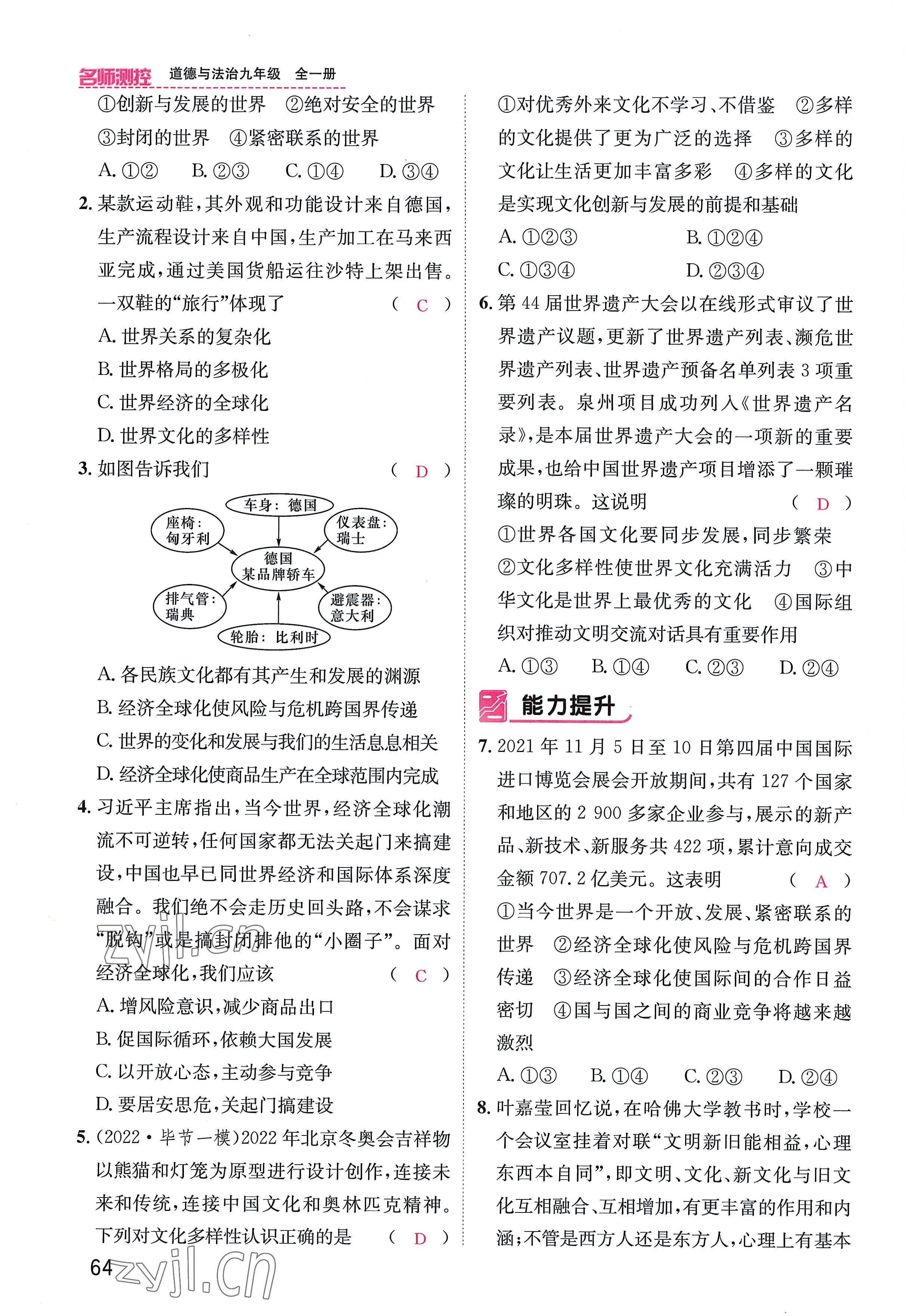 注:目前有些书本章节名称可能整理的还不是很完善,但都是按照顺序排列的,请同学们按照顺序仔细查找。练习册 2022年名师测控九年级道德与法治全一册人教版贵阳专版 答案主要是用来给同学们做完题方便对答案用的,请勿直接抄袭。