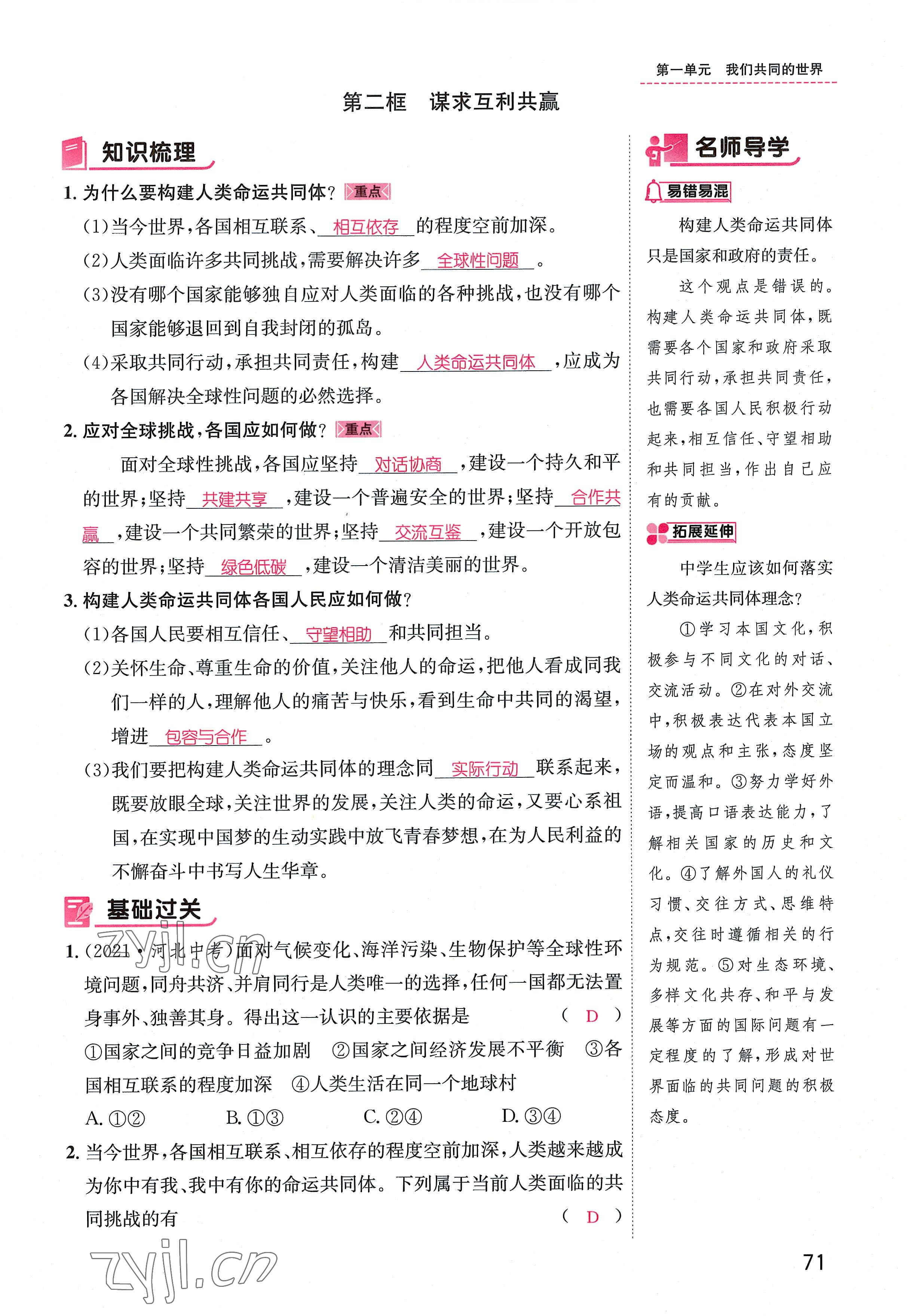 注:目前有些书本章节名称可能整理的还不是很完善,但都是按照顺序排列的,请同学们按照顺序仔细查找。练习册 2022年名师测控九年级道德与法治全一册人教版贵阳专版 答案主要是用来给同学们做完题方便对答案用的,请勿直接抄袭。