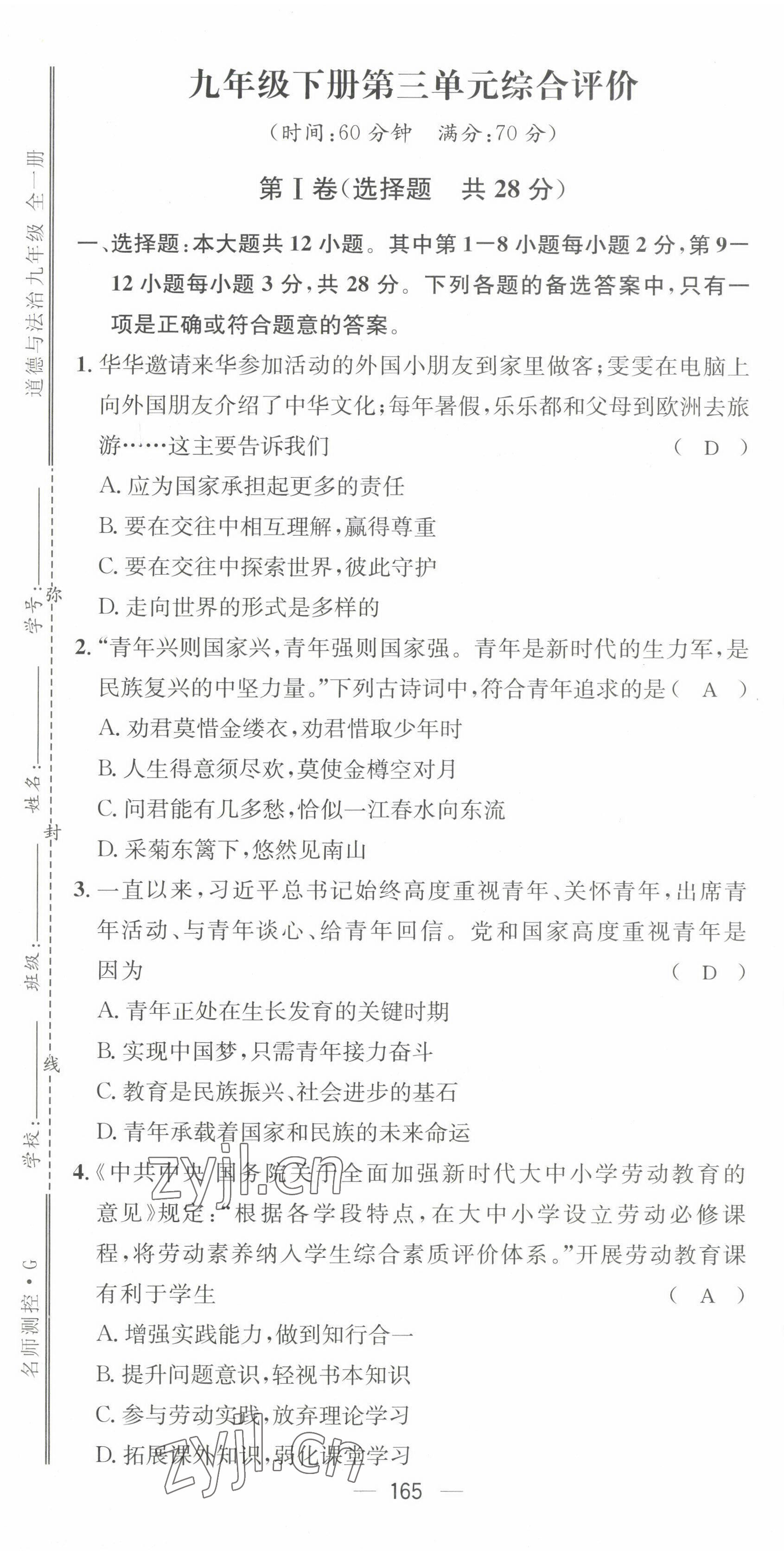 2022年名师测控九年级道德与法治全一册人教版贵阳专版