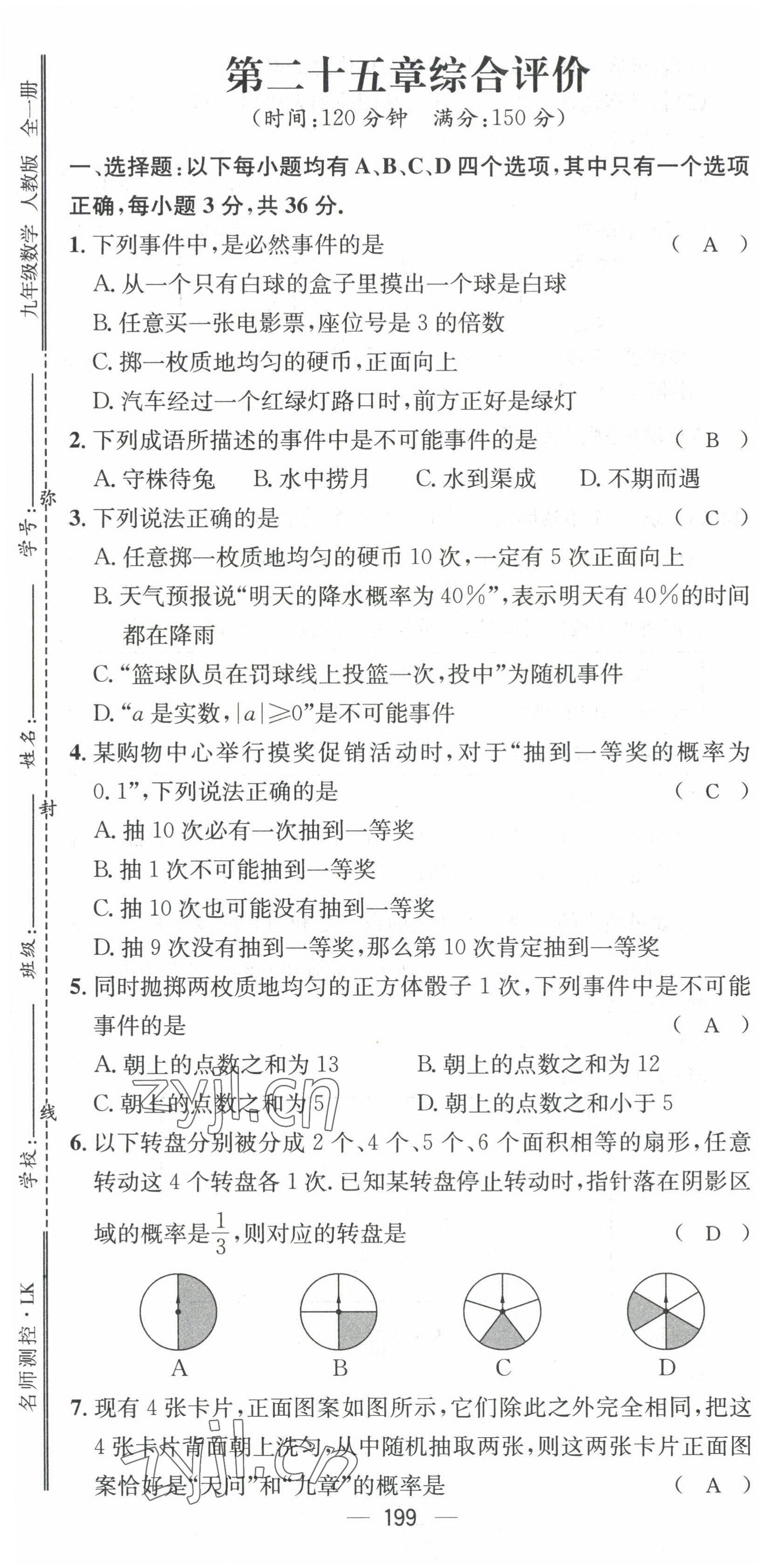 注:目前有些书本章节名称可能整理的还不是很完善,但都是按照顺序排列的,请同学们按照顺序仔细查找。练习册 2022年名师测控九年级数学全一册人教版贵阳专版 答案主要是用来给同学们做完题方便对答案用的,请勿直接抄袭。