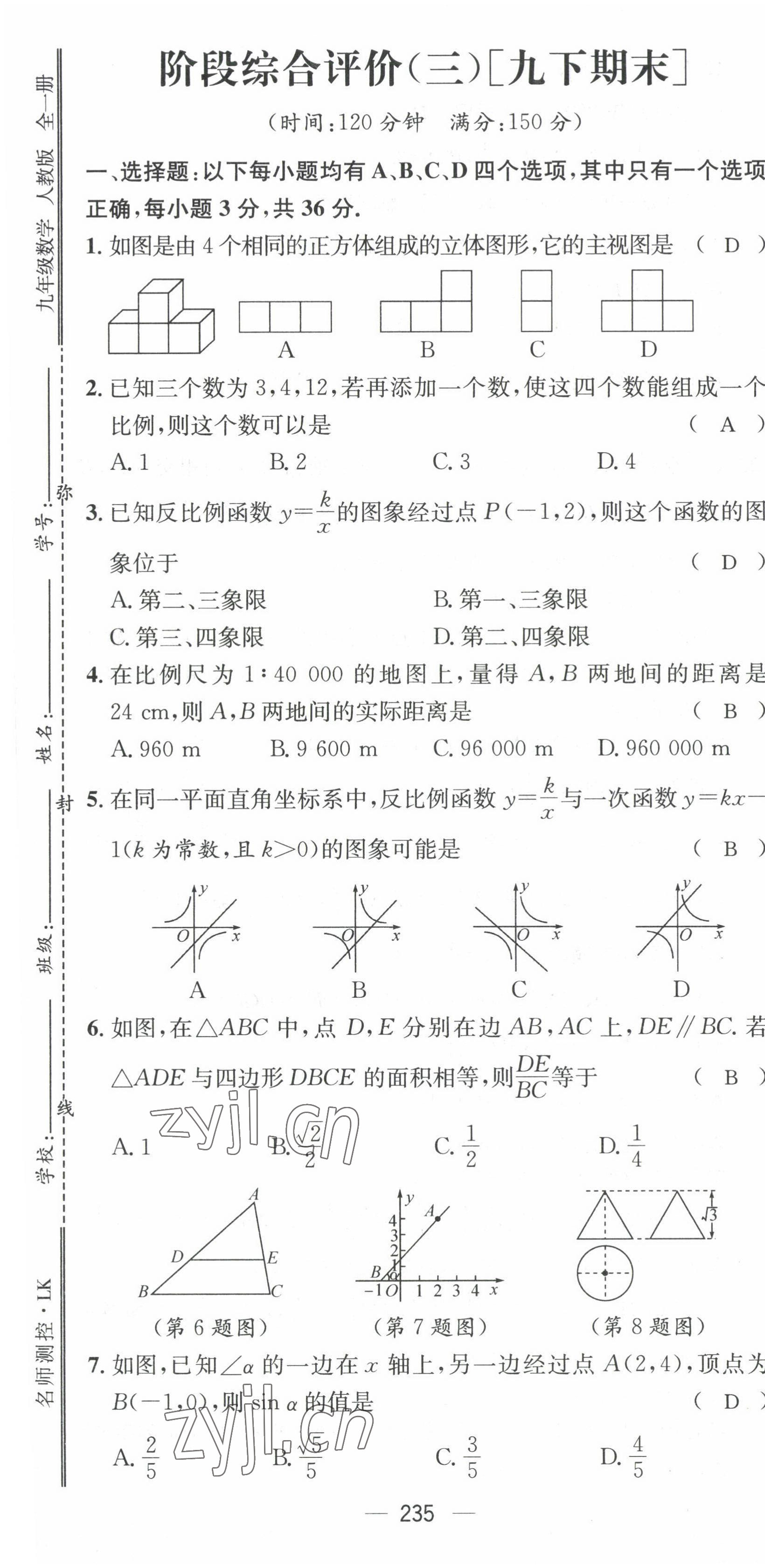 注:目前有些书本章节名称可能整理的还不是很完善,但都是按照顺序排列的,请同学们按照顺序仔细查找。练习册 2022年名师测控九年级数学全一册人教版贵阳专版 答案主要是用来给同学们做完题方便对答案用的,请勿直接抄袭。