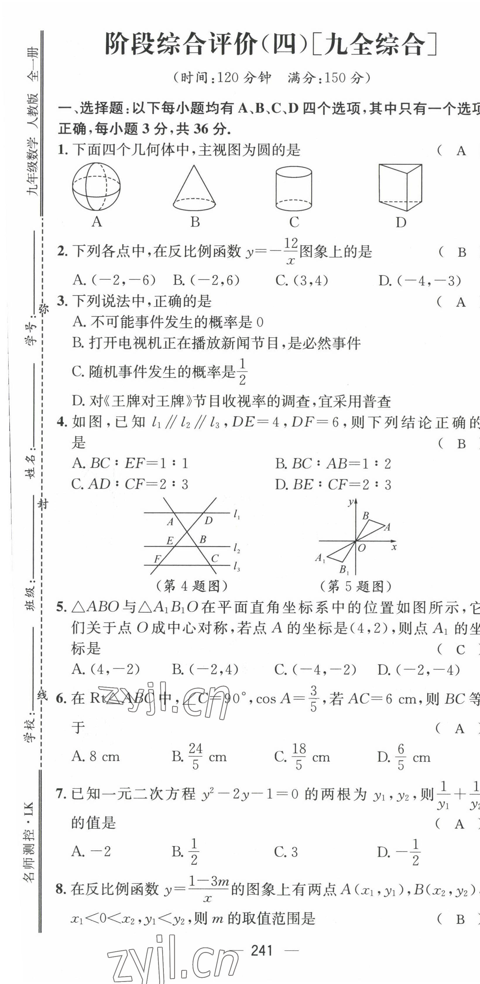 注:目前有些书本章节名称可能整理的还不是很完善,但都是按照顺序排列的,请同学们按照顺序仔细查找。练习册 2022年名师测控九年级数学全一册人教版贵阳专版 答案主要是用来给同学们做完题方便对答案用的,请勿直接抄袭。