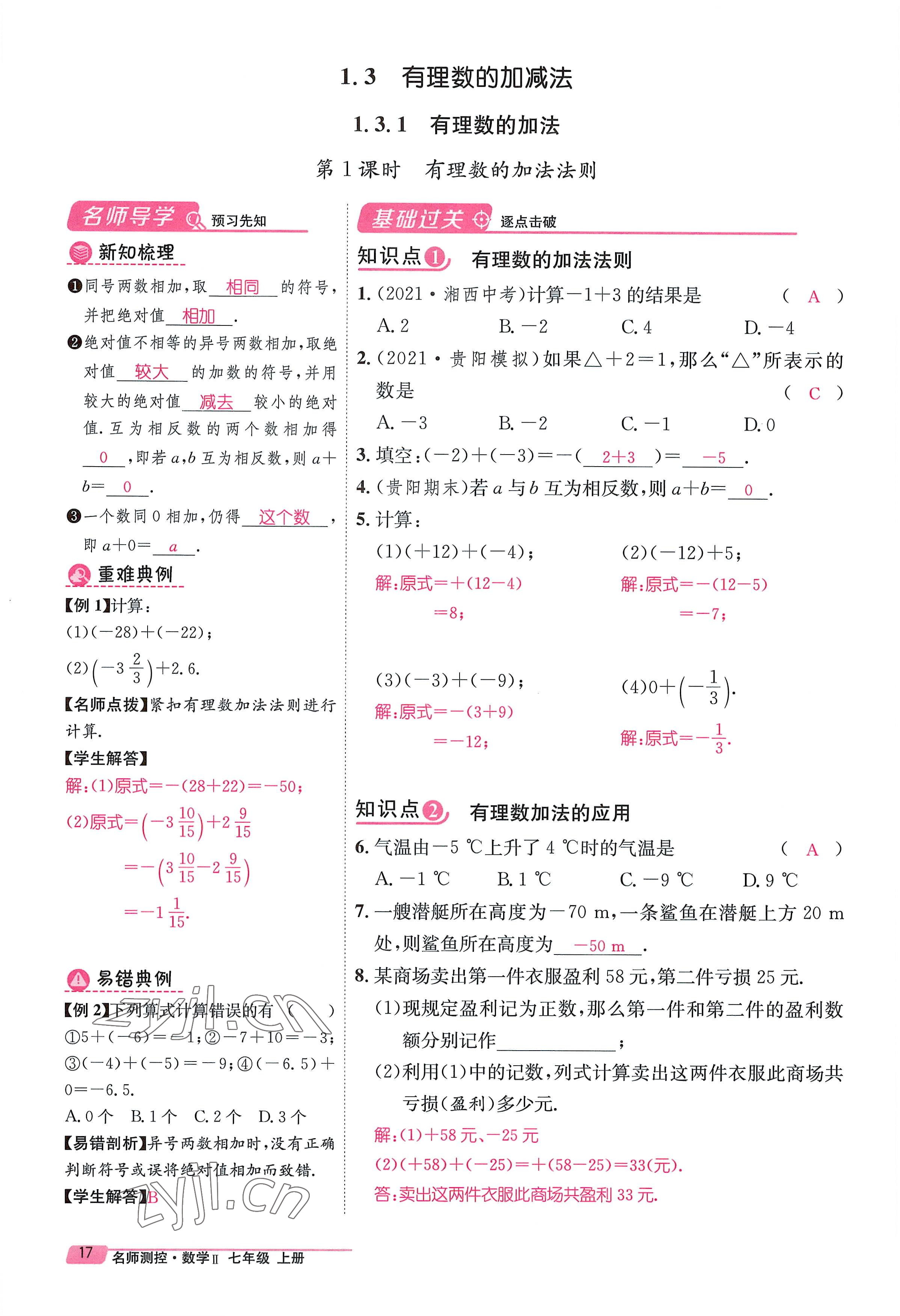 注:目前有些书本章节名称可能整理的还不是很完善,但都是按照顺序排列的,请同学们按照顺序仔细查找。练习册 2022年名师测控七年级数学上册人教版贵阳专版 答案主要是用来给同学们做完题方便对答案用的,请勿直接抄袭。