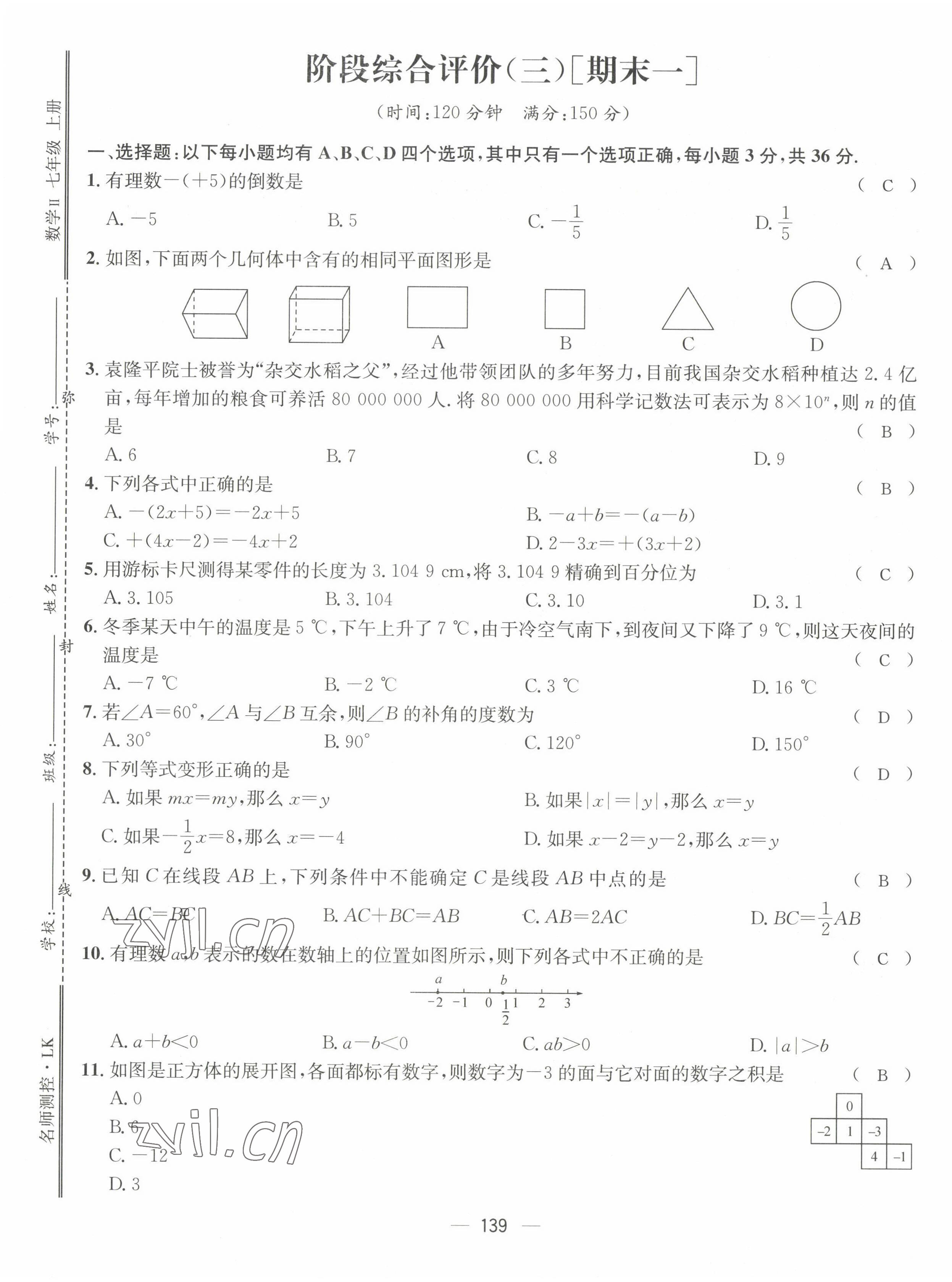 注:目前有些书本章节名称可能整理的还不是很完善,但都是按照顺序排列的,请同学们按照顺序仔细查找。练习册 2022年名师测控七年级数学上册人教版贵阳专版 答案主要是用来给同学们做完题方便对答案用的,请勿直接抄袭。