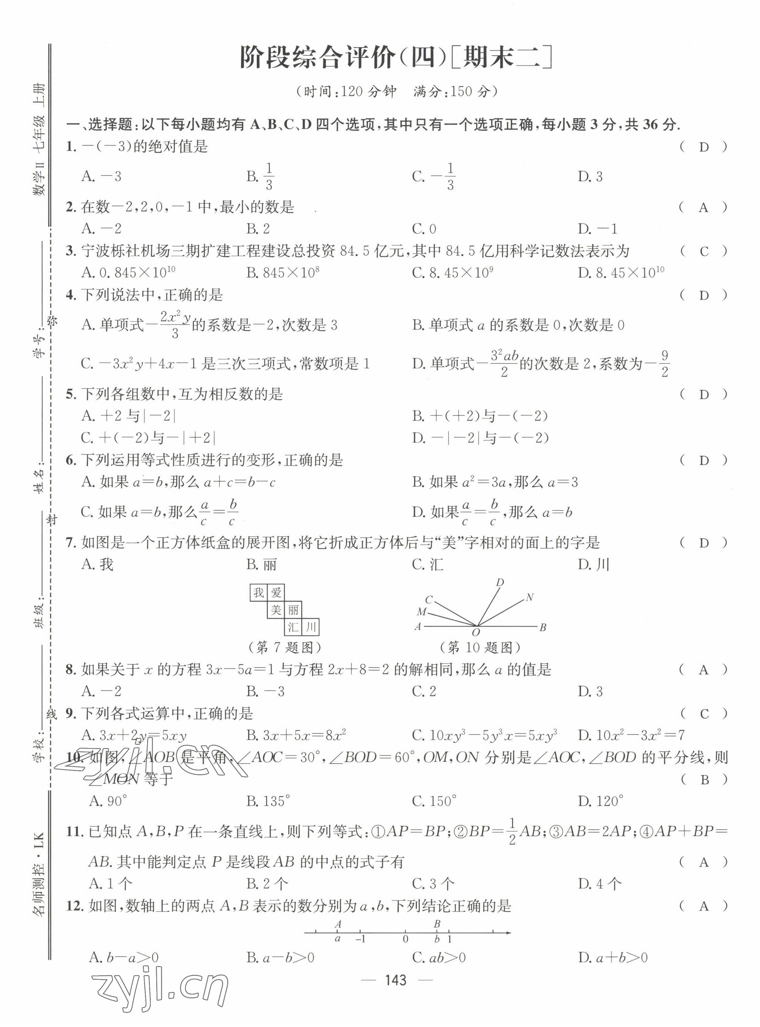 2022年名师测控七年级数学上册人教版贵阳专版