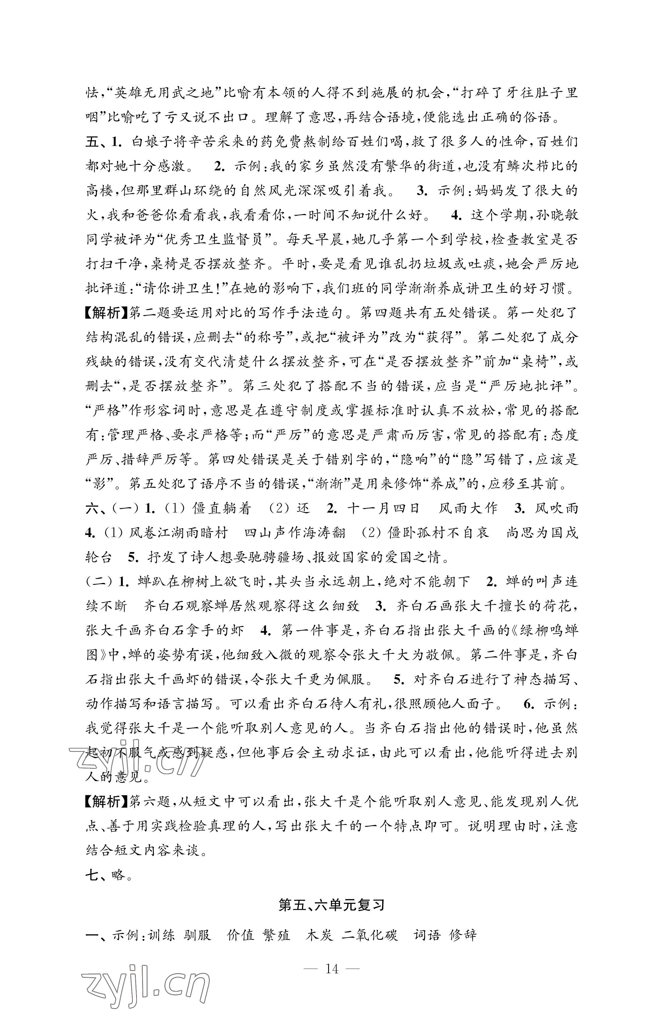 注:目前有些书本章节名称可能整理的还不是很完善,但都是按照顺序排列的,请同学们按照顺序仔细查找。练习册 2022年强化拓展卷五年级语文上册人教版优+版 答案主要是用来给同学们做完题方便对答案用的,请勿直接抄袭。