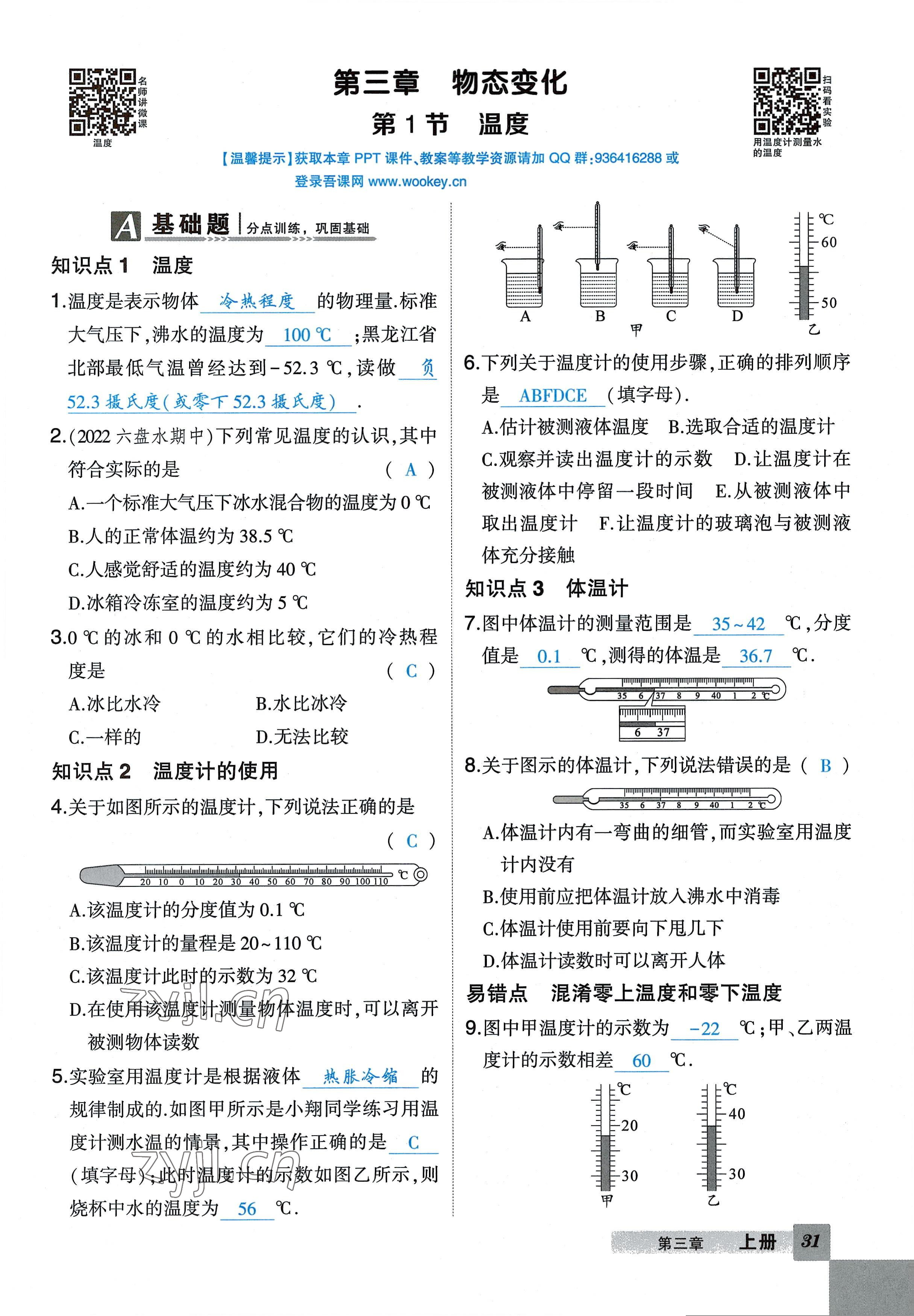 2022年状元成才路创优作业八年级物理上册人教版六盘水专版