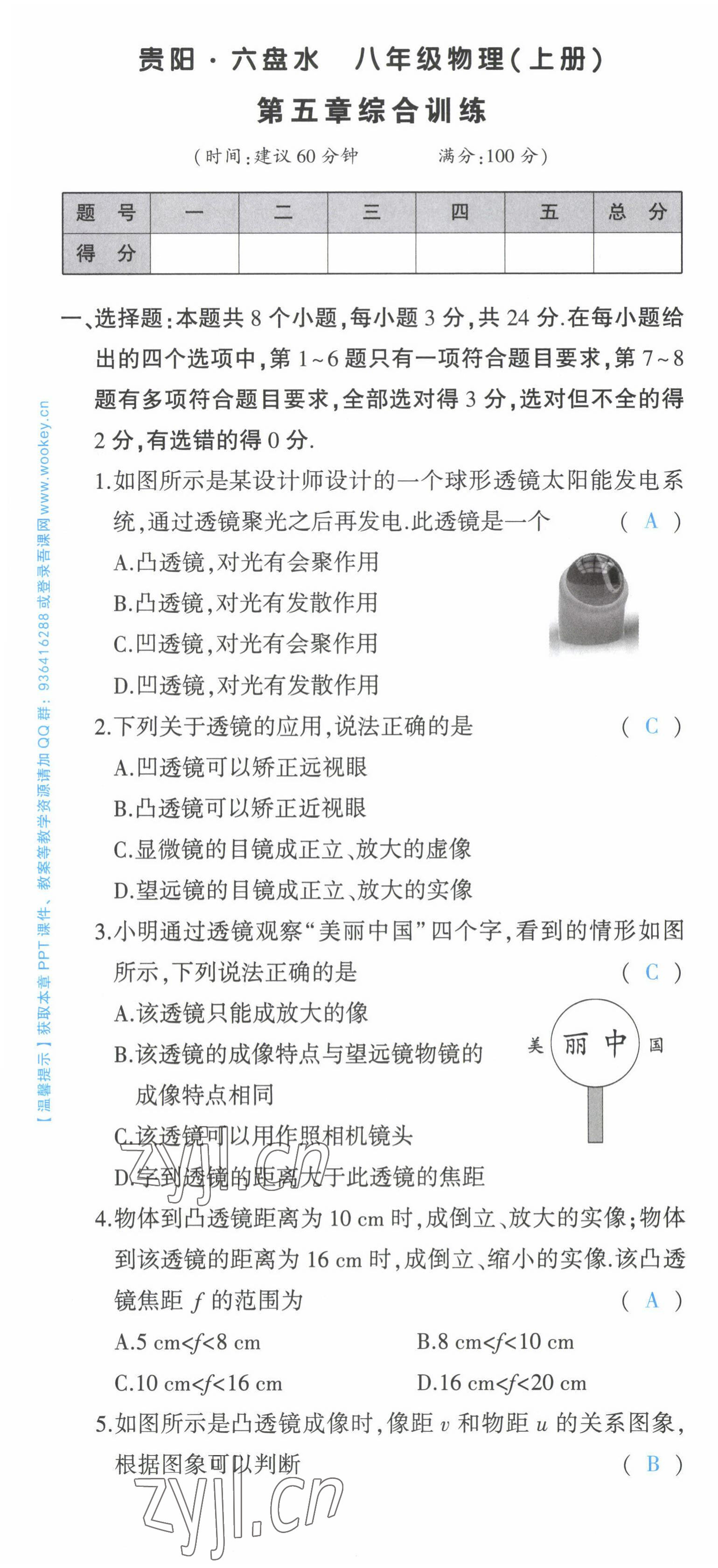 2022年状元成才路创优作业八年级物理上册人教版六盘水专版