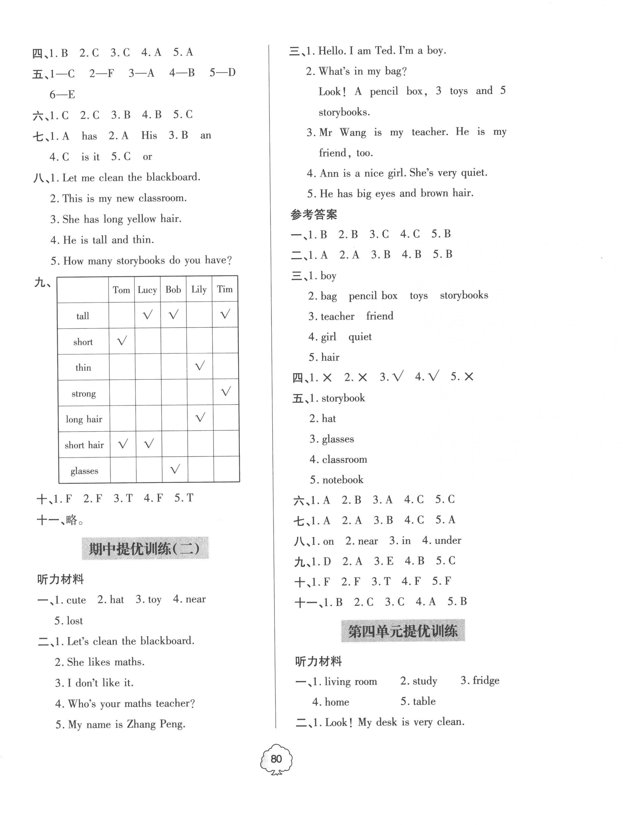 注:目前有些书本章节名称可能整理的还不是很完善,但都是按照顺序排列的,请同学们按照顺序仔细查找。练习册 2022年新课堂同步学习与探究提优训练四年级英语上册人教版 答案主要是用来给同学们做完题方便对答案用的,请勿直接抄袭。