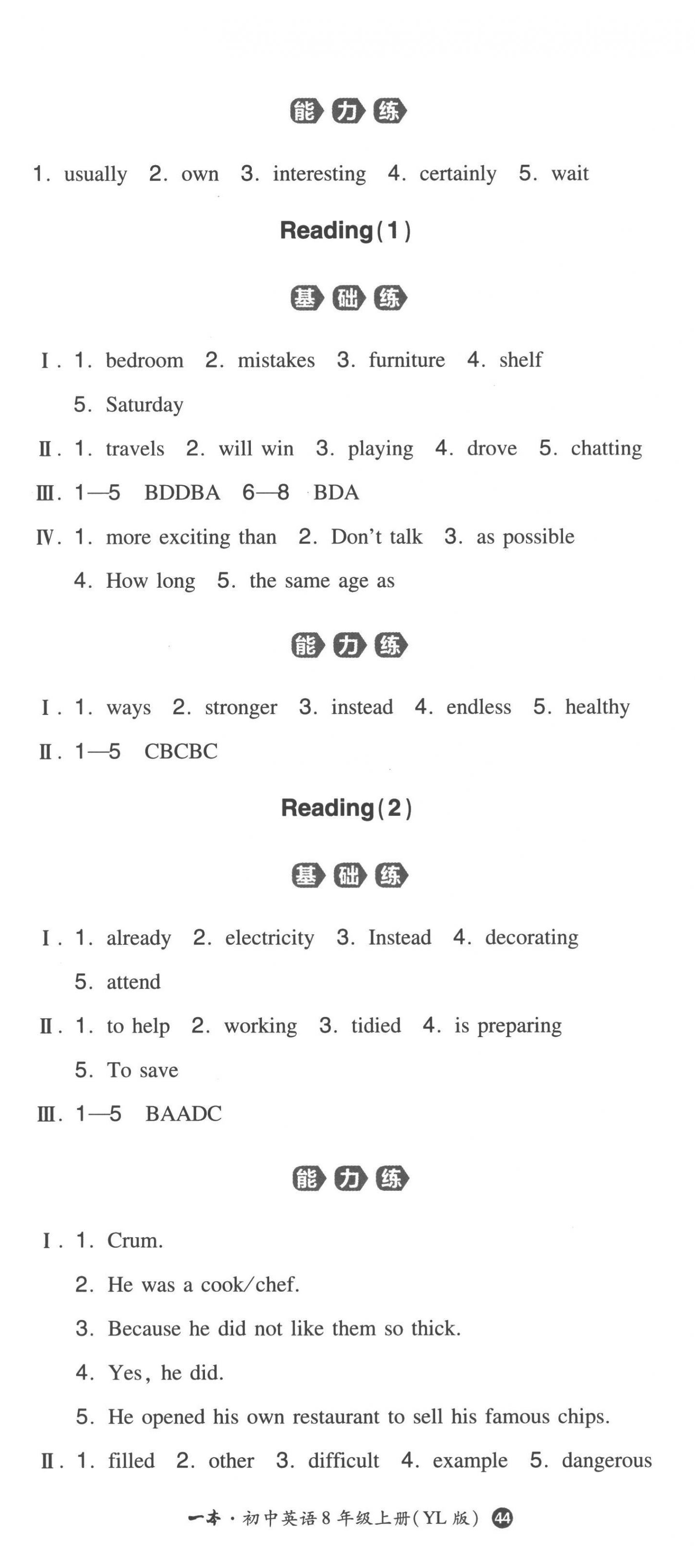 注:目前有些书本章节名称可能整理的还不是很完善,但都是按照顺序排列的,请同学们按照顺序仔细查找。练习册 2022年一本同步训练八年级初中英语上册译林版 答案主要是用来给同学们做完题方便对答案用的,请勿直接抄袭。