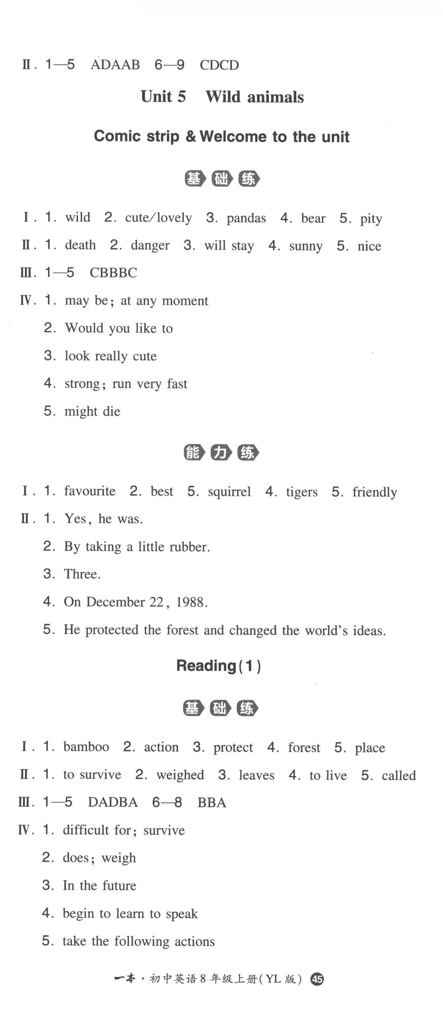注:目前有些书本章节名称可能整理的还不是很完善,但都是按照顺序排列的,请同学们按照顺序仔细查找。练习册 2022年一本同步训练八年级初中英语上册译林版 答案主要是用来给同学们做完题方便对答案用的,请勿直接抄袭。