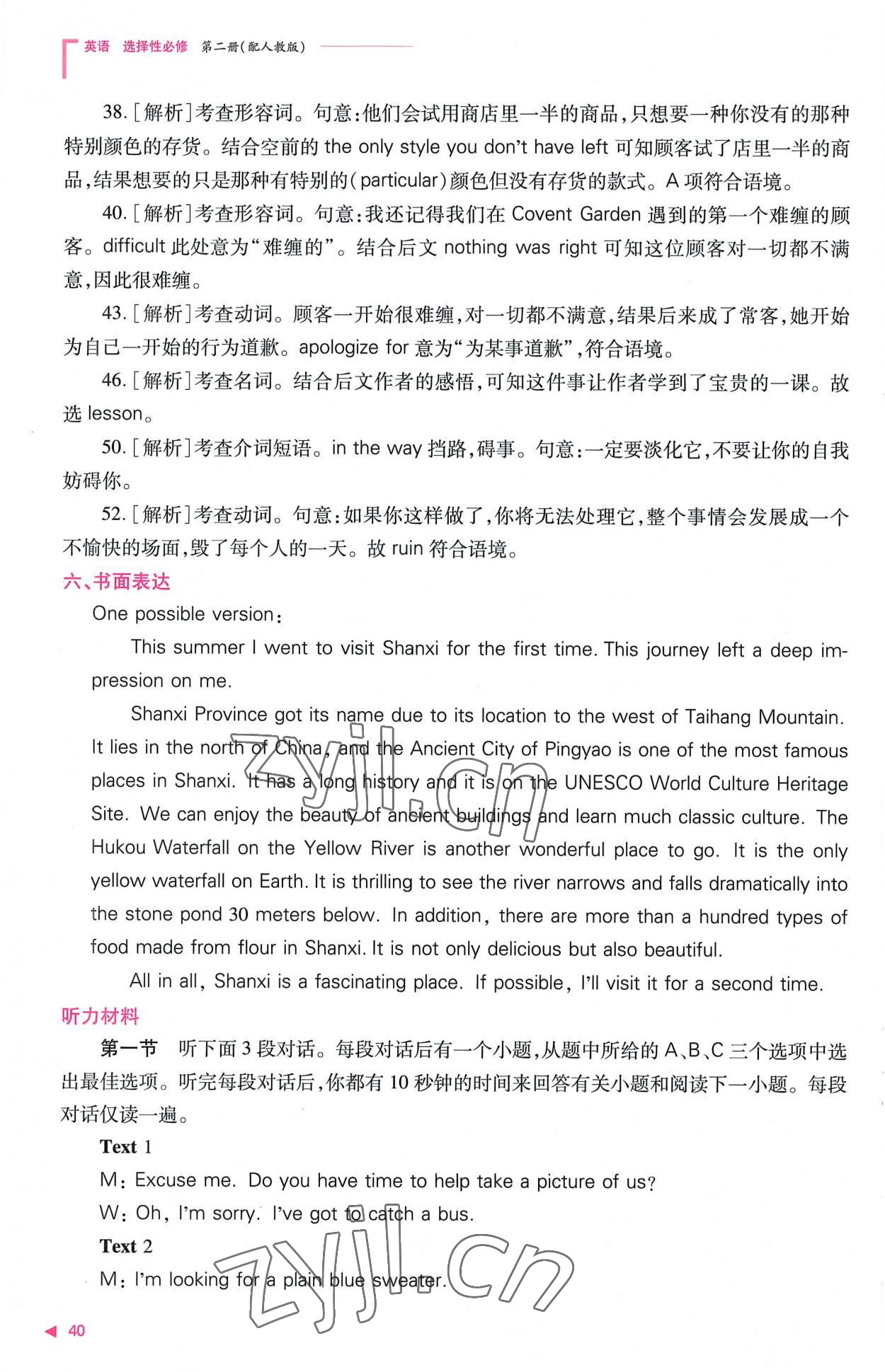 注:目前有些书本章节名称可能整理的还不是很完善,但都是按照顺序排列的,请同学们按照顺序仔细查找。练习册 2022年普通高中新课程同步练习册高中英语选择性必修第二册人教版 答案主要是用来给同学们做完题方便对答案用的,请勿直接抄袭。