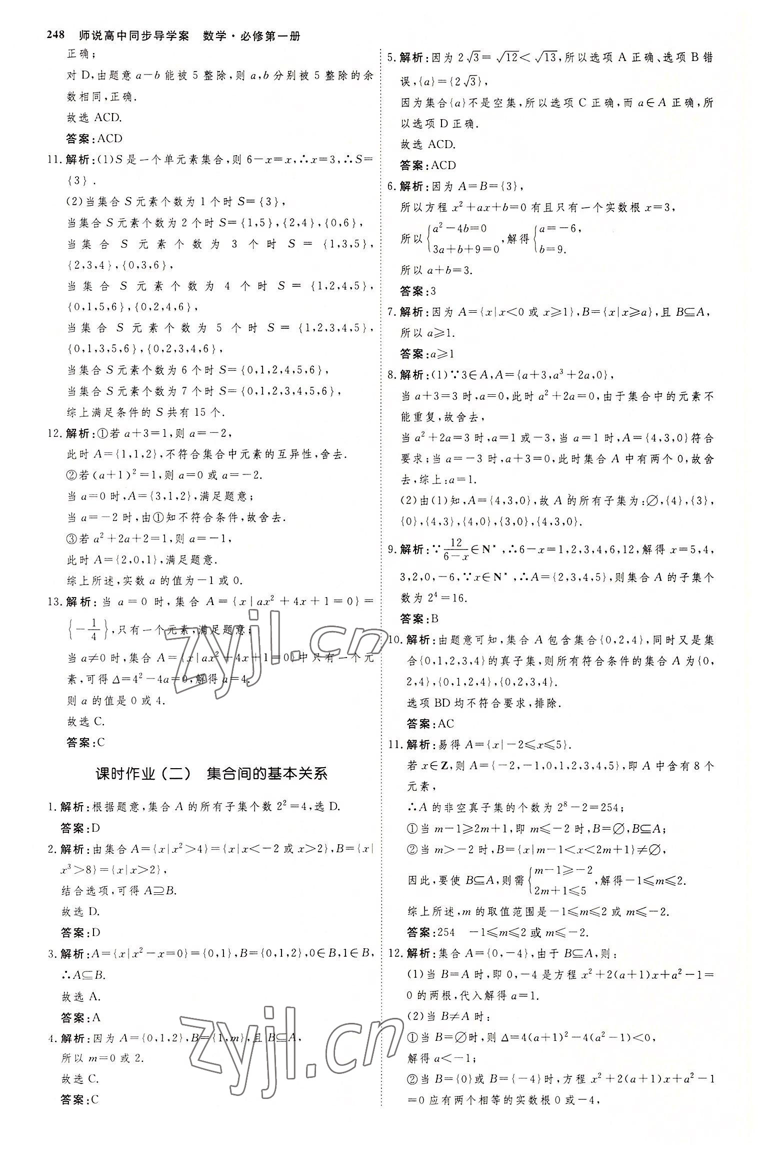 注:目前有些书本章节名称可能整理的还不是很完善,但都是按照顺序排列的,请同学们按照顺序仔细查找。练习册 2022年师说高中数学必修第一册人教版 答案主要是用来给同学们做完题方便对答案用的,请勿直接抄袭。