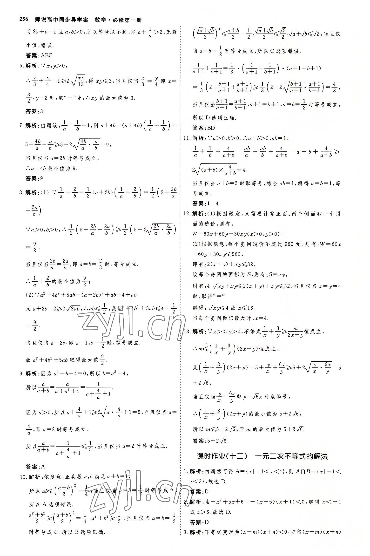 注:目前有些书本章节名称可能整理的还不是很完善,但都是按照顺序排列的,请同学们按照顺序仔细查找。练习册 2022年师说高中数学必修第一册人教版 答案主要是用来给同学们做完题方便对答案用的,请勿直接抄袭。