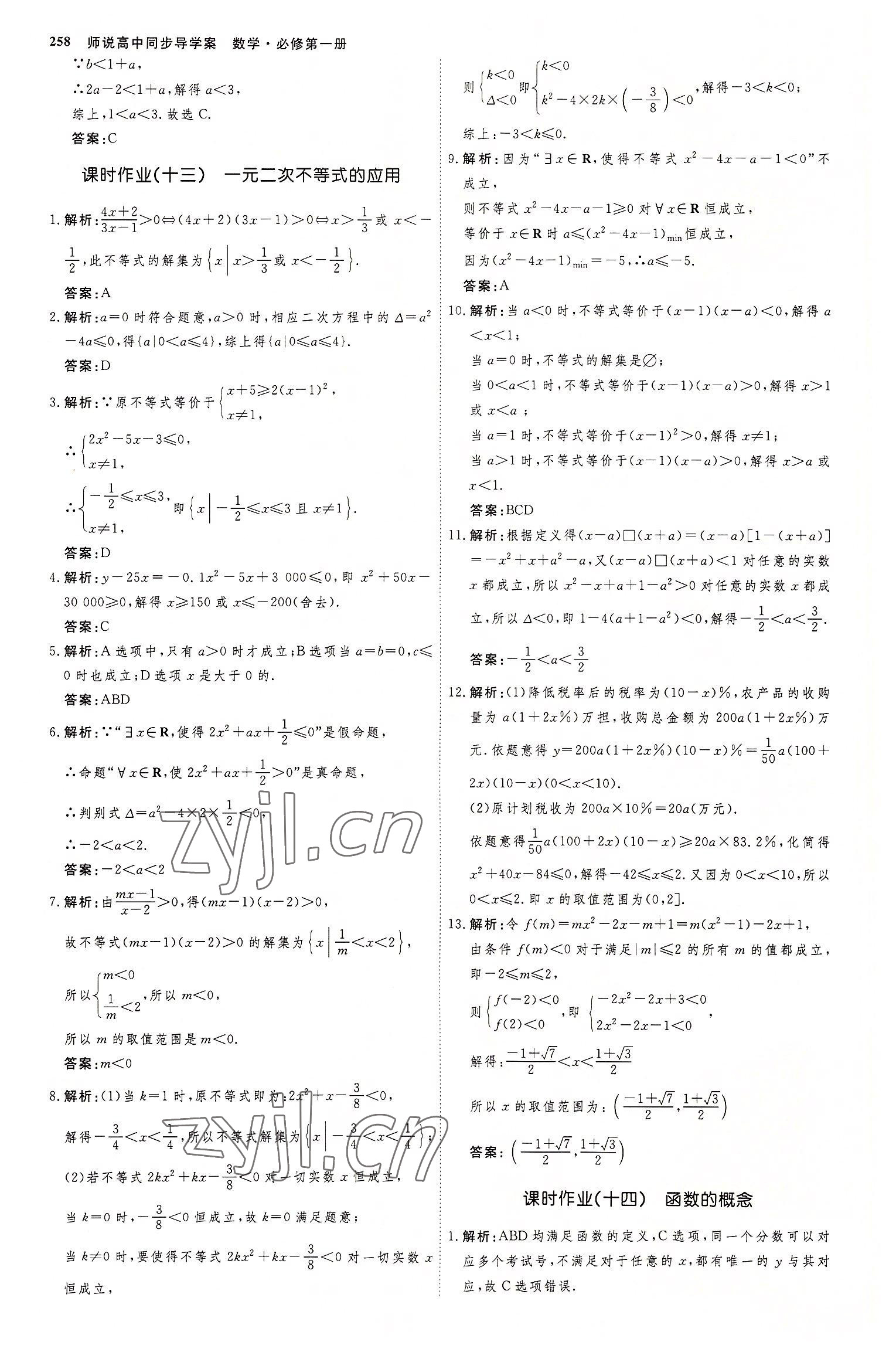 注:目前有些书本章节名称可能整理的还不是很完善,但都是按照顺序排列的,请同学们按照顺序仔细查找。练习册 2022年师说高中数学必修第一册人教版 答案主要是用来给同学们做完题方便对答案用的,请勿直接抄袭。