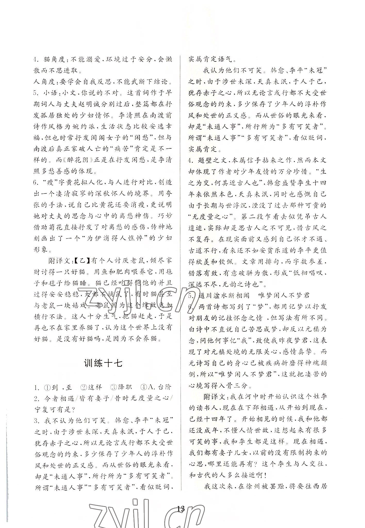 注:目前有些书本章节名称可能整理的还不是很完善,但都是按照顺序排列的,请同学们按照顺序仔细查找。练习册 2022年课外古诗文阅读九年级语文人教版优选优练 答案主要是用来给同学们做完题方便对答案用的,请勿直接抄袭。