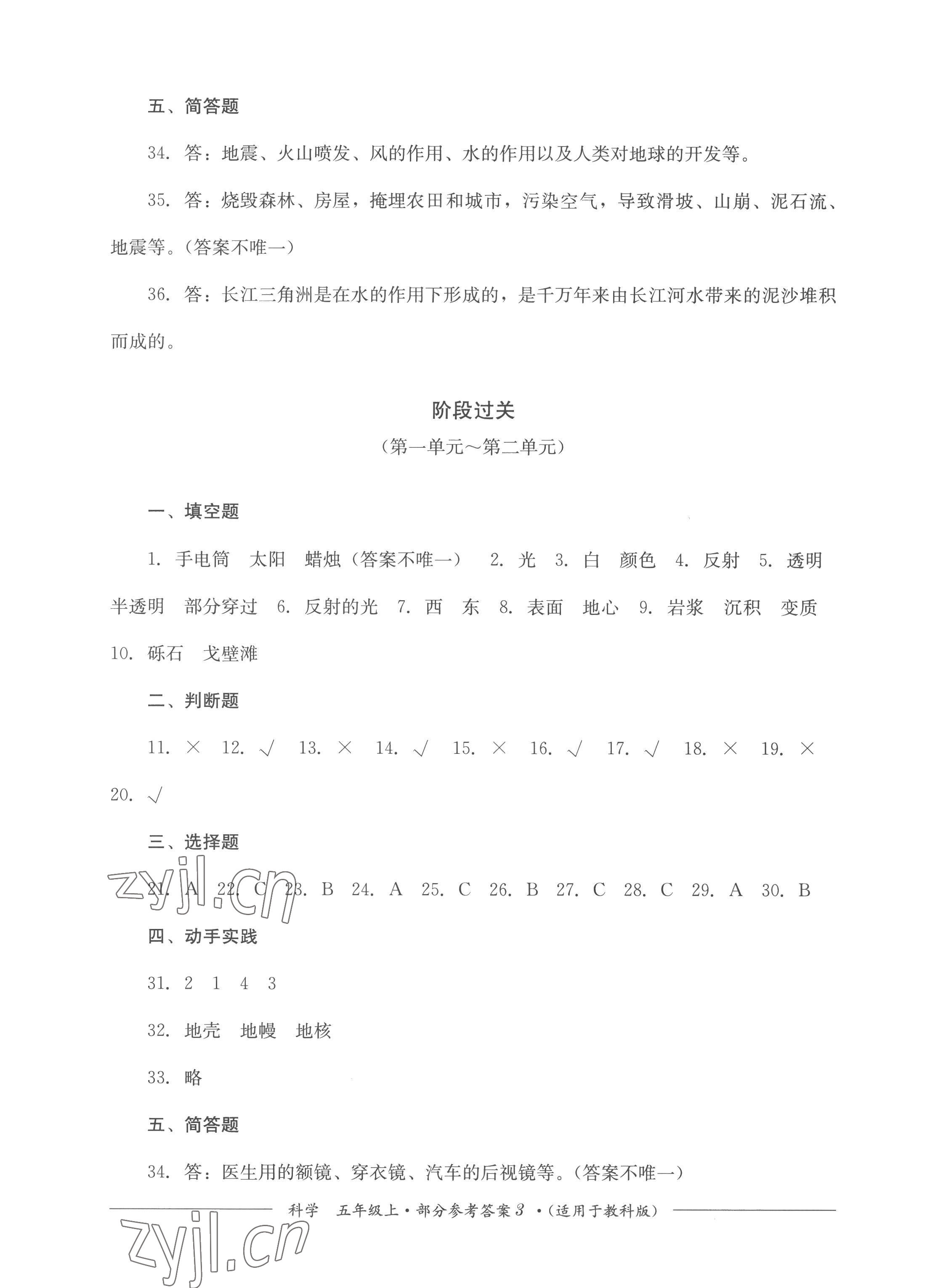 注:目前有些书本章节名称可能整理的还不是很完善,但都是按照顺序排列的,请同学们按照顺序仔细查找。练习册 2022年精练过关四川教育出版社五年级科学上册教科版 答案主要是用来给同学们做完题方便对答案用的,请勿直接抄袭。