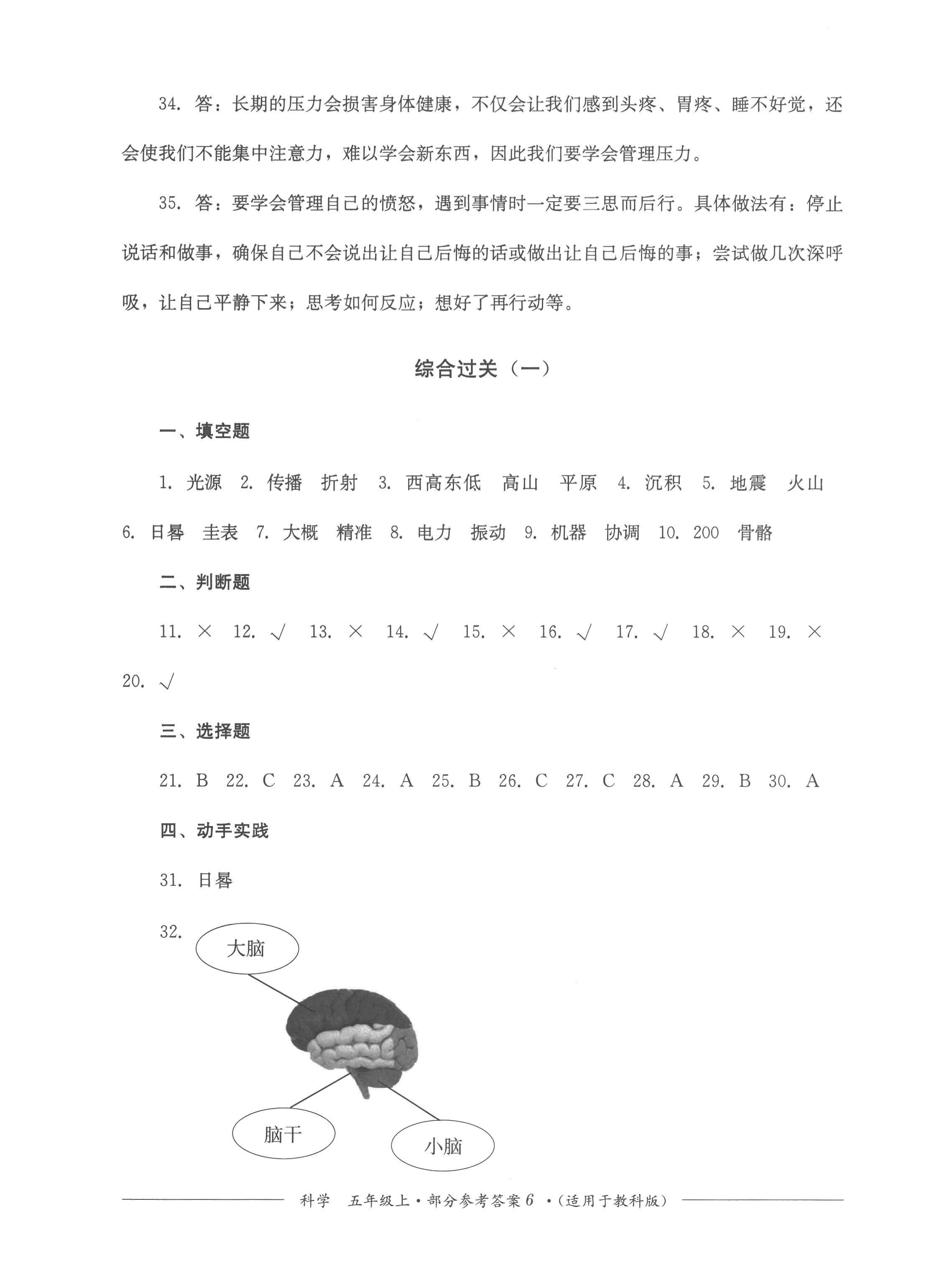 注:目前有些书本章节名称可能整理的还不是很完善,但都是按照顺序排列的,请同学们按照顺序仔细查找。练习册 2022年精练过关四川教育出版社五年级科学上册教科版 答案主要是用来给同学们做完题方便对答案用的,请勿直接抄袭。