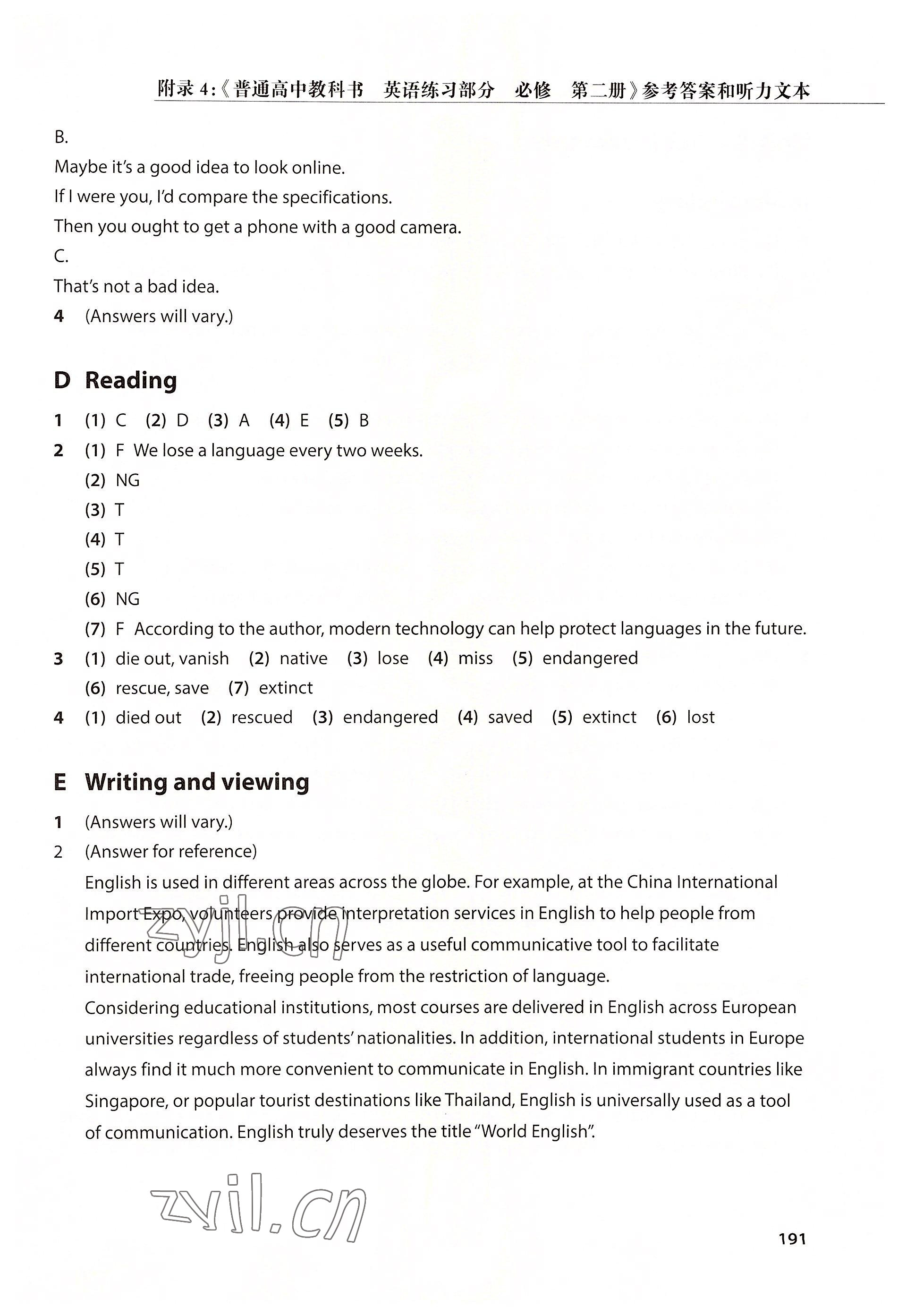 注:目前有些书本章节名称可能整理的还不是很完善,但都是按照顺序排列的,请同学们按照顺序仔细查找。练习册 2022年练习部分高中英语必修第二册沪教版 答案主要是用来给同学们做完题方便对答案用的,请勿直接抄袭。