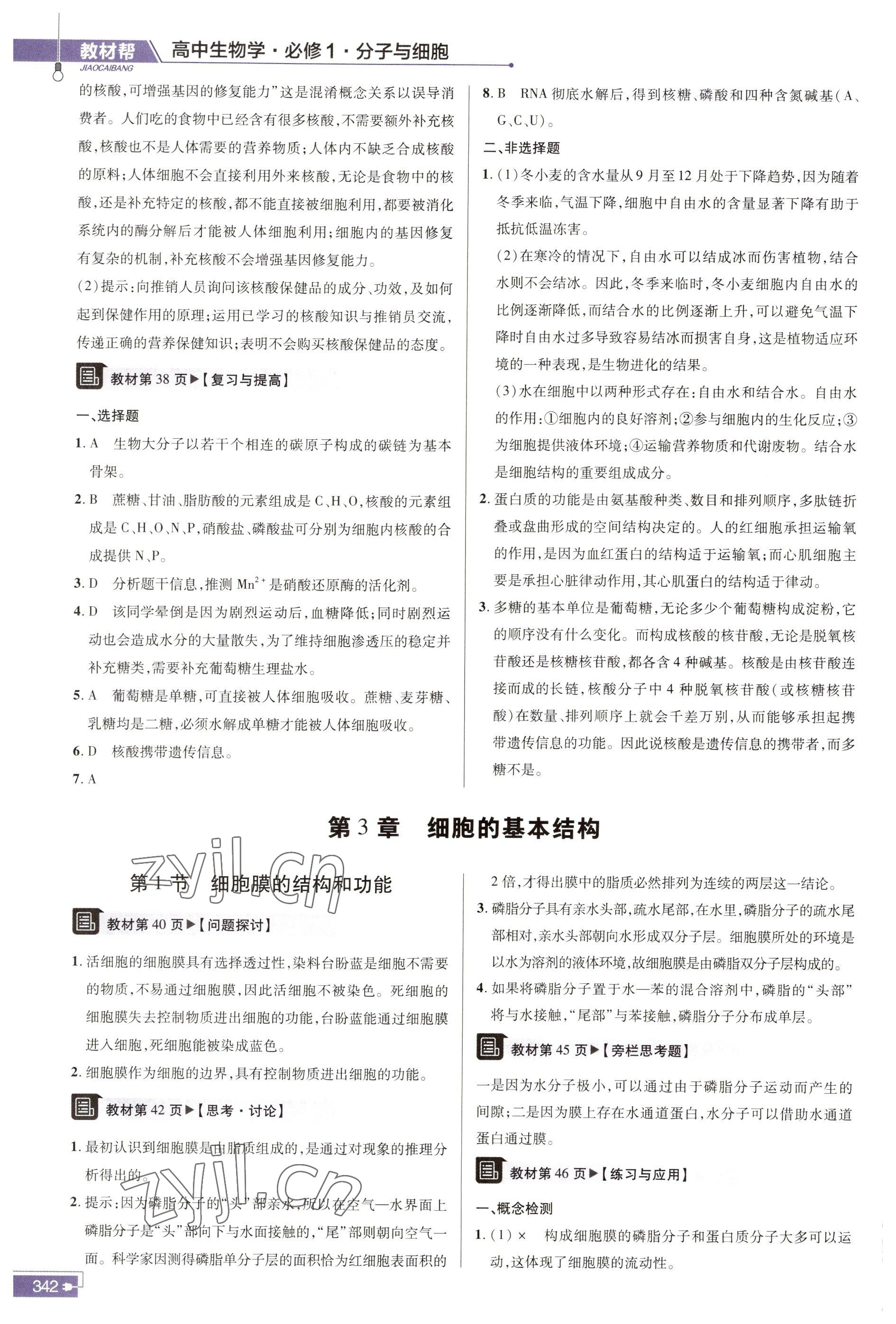 注:目前有些书本章节名称可能整理的还不是很完善,但都是按照顺序排列的,请同学们按照顺序仔细查找。练习册 2022年教材课本高中生物必修1人教版 答案主要是用来给同学们做完题方便对答案用的,请勿直接抄袭。