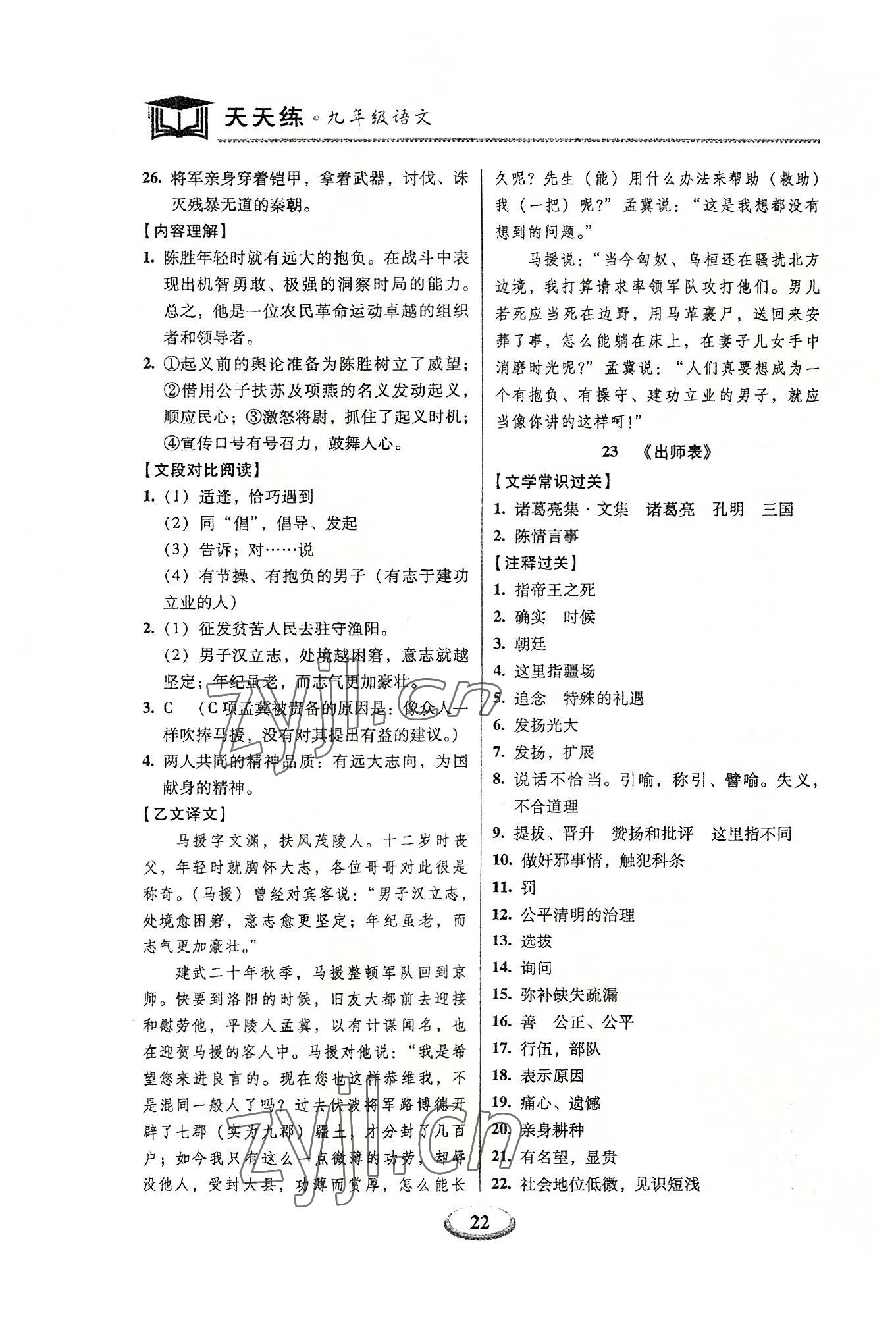 2023年天天练九年级语文上下册人教版深圳专版广东经济出版社