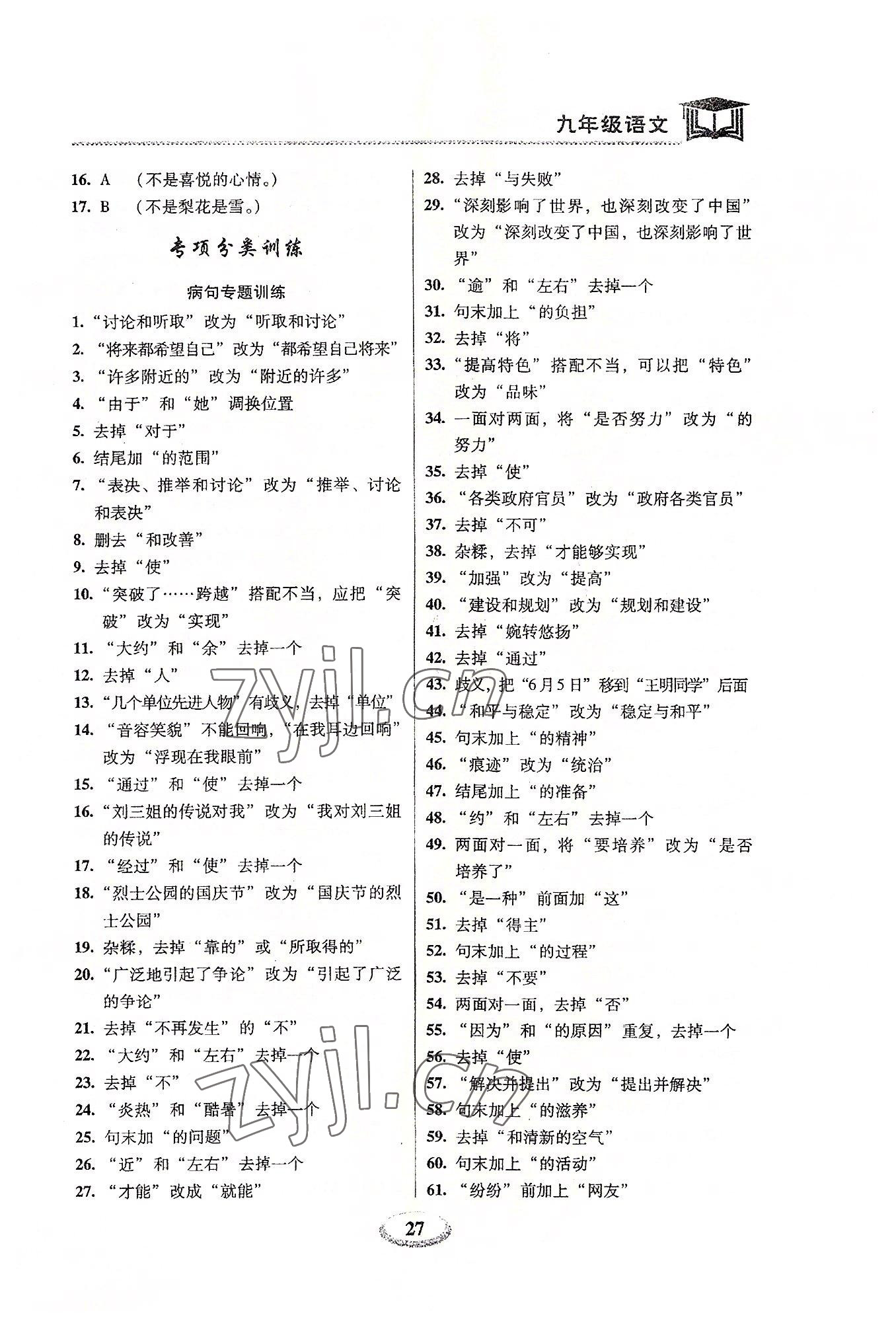 注:目前有些书本章节名称可能整理的还不是很完善,但都是按照顺序排列的,请同学们按照顺序仔细查找。练习册 2023年天天练九年级语文上下册人教版深圳专版广东经济出版社 答案主要是用来给同学们做完题方便对答案用的,请勿直接抄袭。