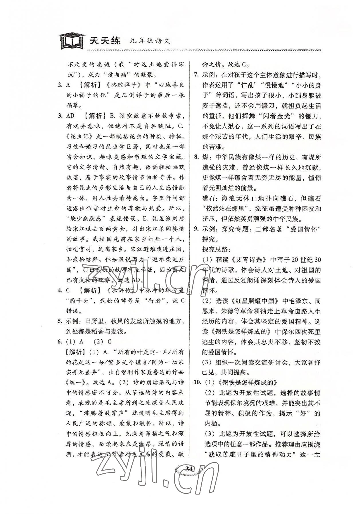 注:目前有些书本章节名称可能整理的还不是很完善,但都是按照顺序排列的,请同学们按照顺序仔细查找。练习册 2023年天天练九年级语文上下册人教版深圳专版广东经济出版社 答案主要是用来给同学们做完题方便对答案用的,请勿直接抄袭。