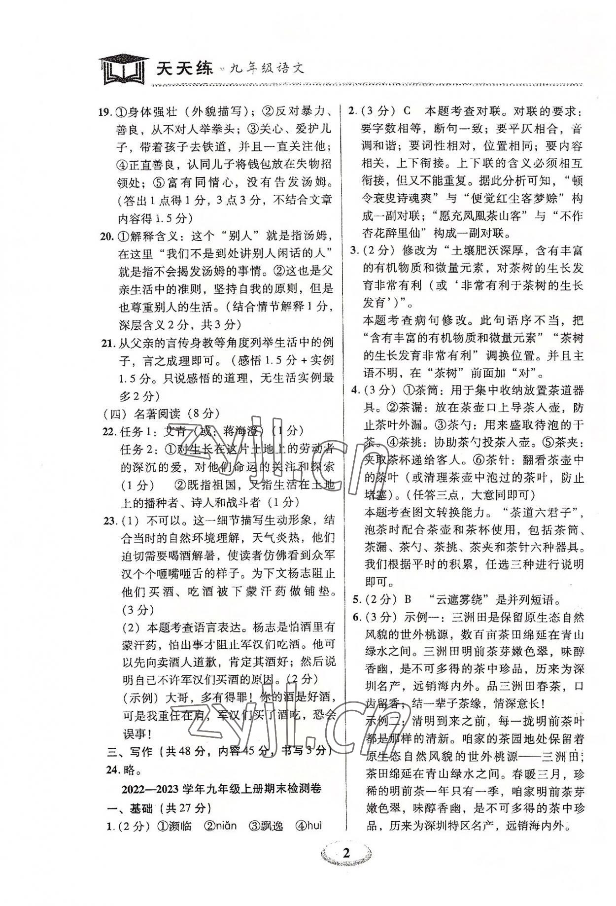 2023年天天练九年级语文上下册人教版深圳专版广东经济出版社