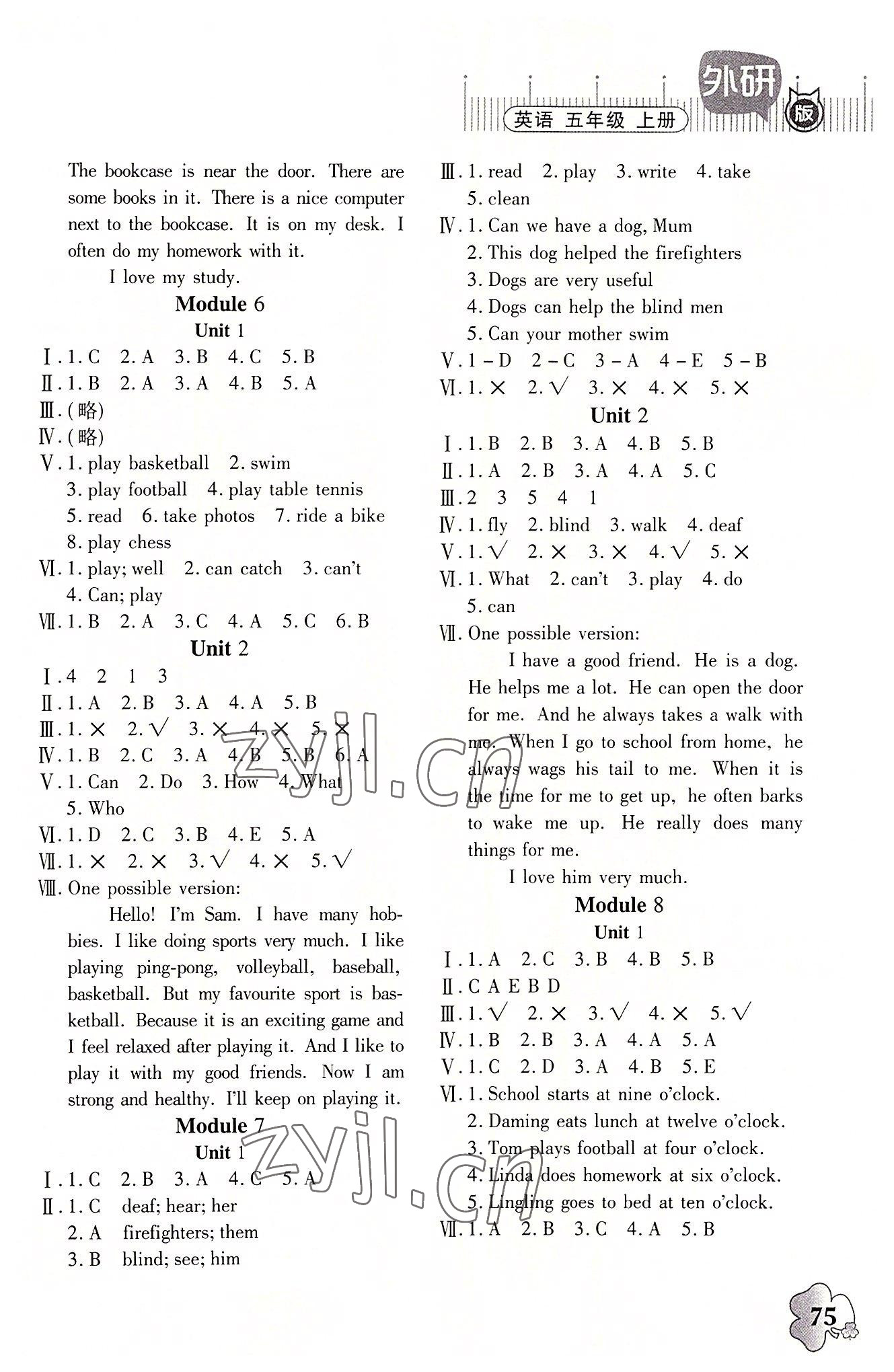 注:目前有些书本章节名称可能整理的还不是很完善,但都是按照顺序排列的,请同学们按照顺序仔细查找。练习册 2022年快乐课堂五年级英语上册外研版 答案主要是用来给同学们做完题方便对答案用的,请勿直接抄袭。