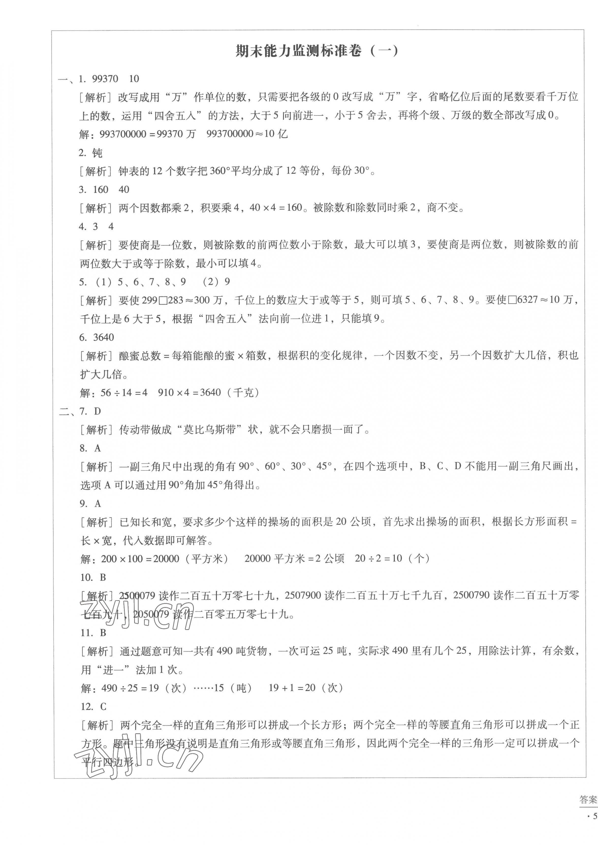 注:目前有些书本章节名称可能整理的还不是很完善,但都是按照顺序排列的,请同学们按照顺序仔细查找。练习册 2022年小学能力监测标准卷四年级数学上册人教版 答案主要是用来给同学们做完题方便对答案用的,请勿直接抄袭。