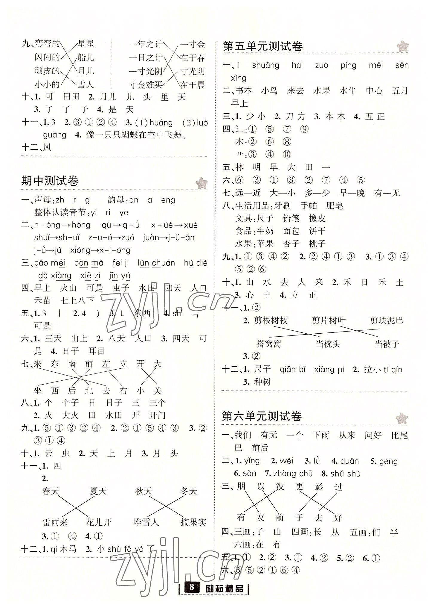 注:目前有些书本章节名称可能整理的还不是很完善,但都是按照顺序排列的,请同学们按照顺序仔细查找。练习册 2022年励耘书业励耘新同步一年级语文上册人教版 答案主要是用来给同学们做完题方便对答案用的,请勿直接抄袭。
