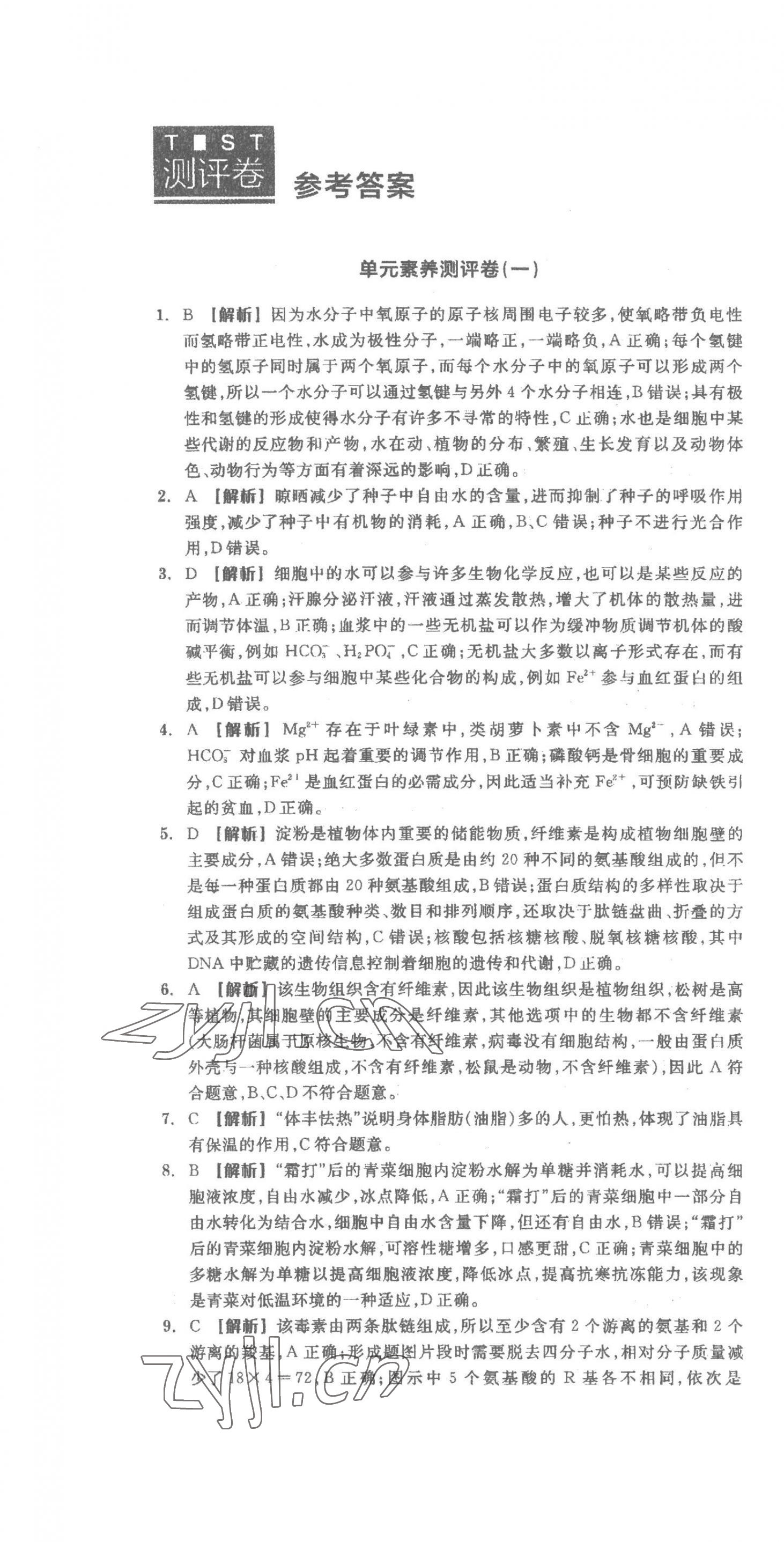 注:目前有些书本章节名称可能整理的还不是很完善,但都是按照顺序排列的,请同学们按照顺序仔细查找。练习册 2022年全品学练考高中生物必修1浙科版 答案主要是用来给同学们做完题方便对答案用的,请勿直接抄袭。