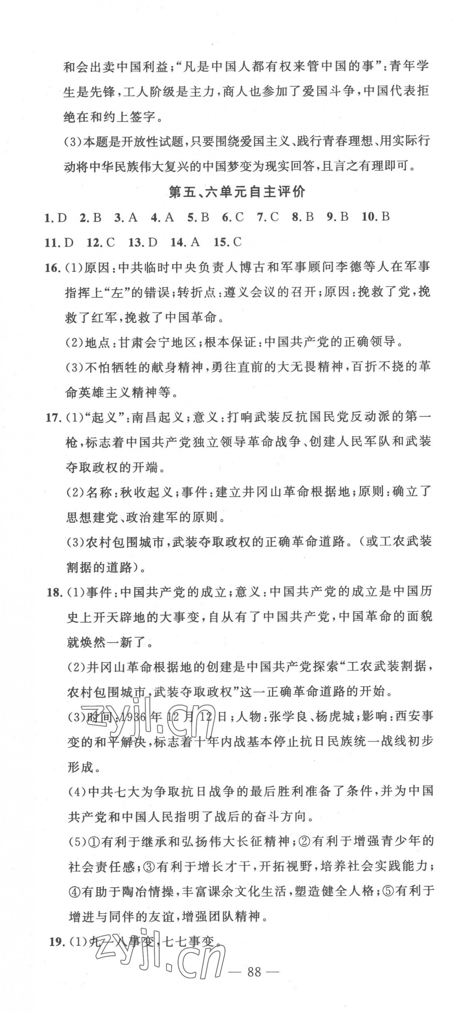 2022年智慧课堂自主评价八年级历史上册人教版十堰专版