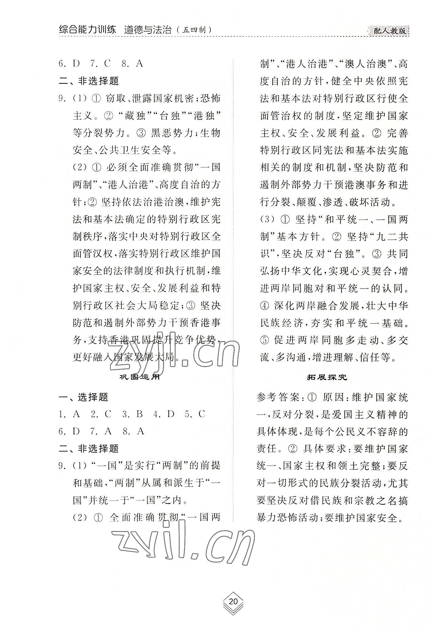 注:目前有些书本章节名称可能整理的还不是很完善,但都是按照顺序排列的,请同学们按照顺序仔细查找。练习册 2022年综合能力训练九年级道德与法治全一册1人教版五四制 答案主要是用来给同学们做完题方便对答案用的,请勿直接抄袭。