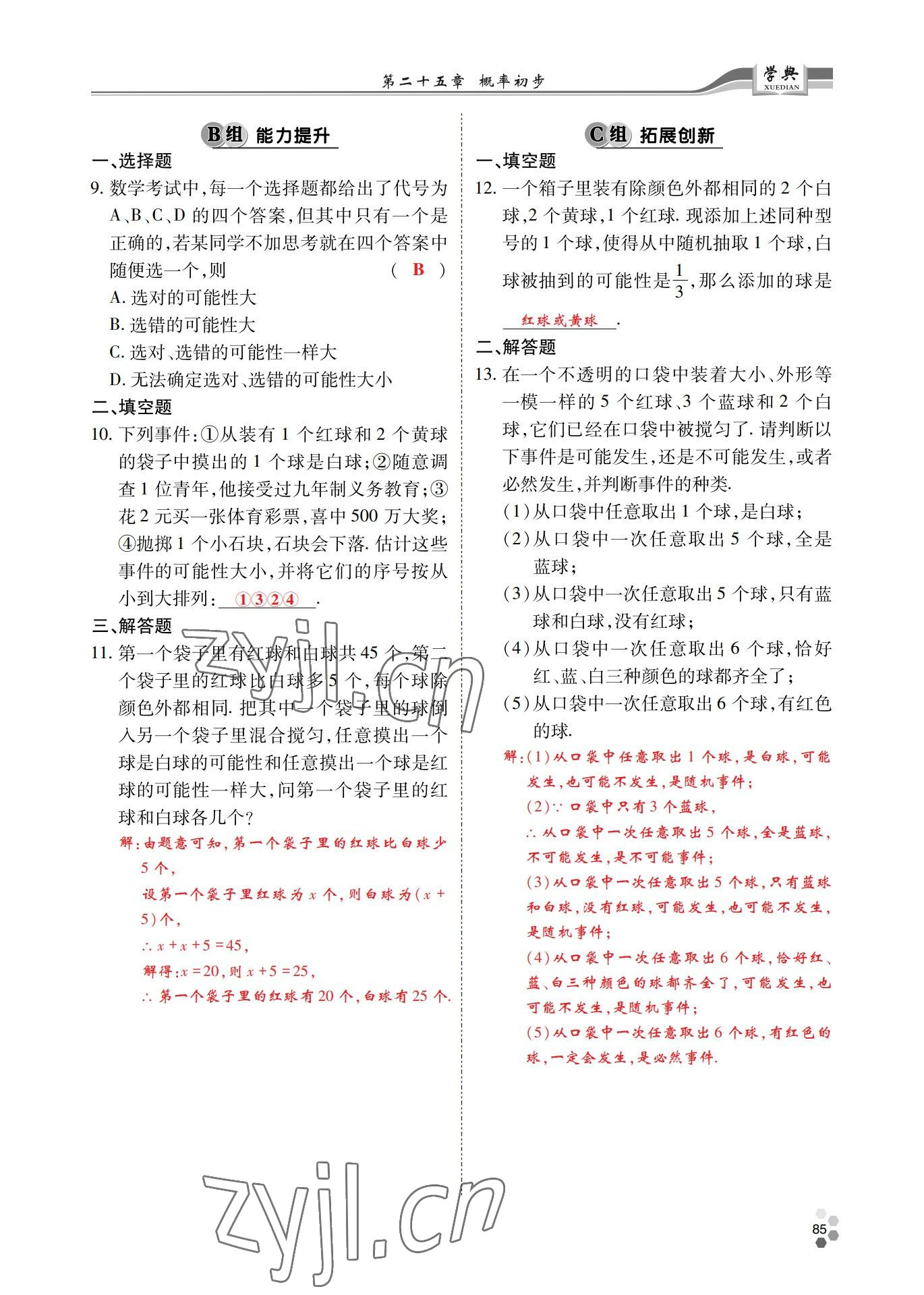 注:目前有些书本章节名称可能整理的还不是很完善,但都是按照顺序排列的,请同学们按照顺序仔细查找。练习册 2022年学典四川九年级数学全一册人教版 答案主要是用来给同学们做完题方便对答案用的,请勿直接抄袭。