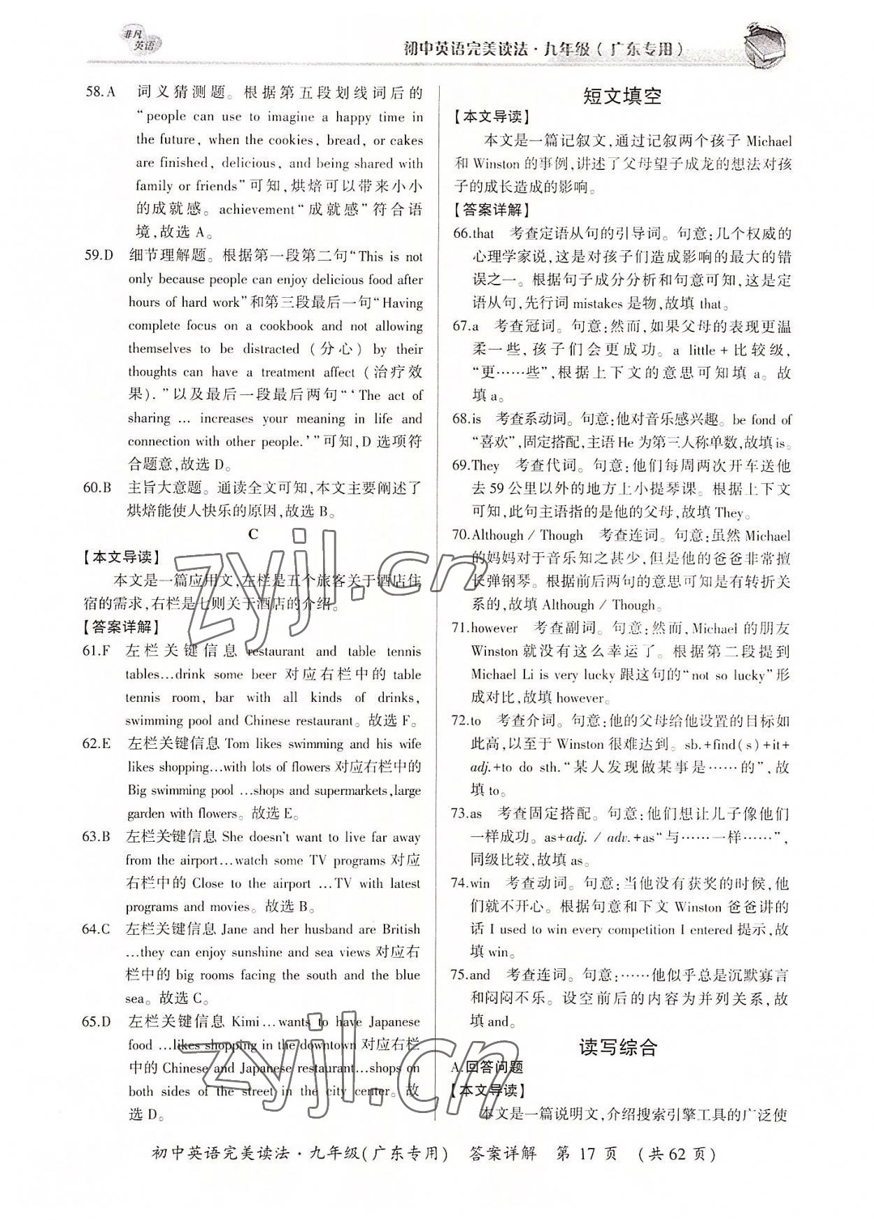 注:目前有些书本章节名称可能整理的还不是很完善,但都是按照顺序排列的,请同学们按照顺序仔细查找。练习册 2022年完美读法九年级全一册广东专版 答案主要是用来给同学们做完题方便对答案用的,请勿直接抄袭。