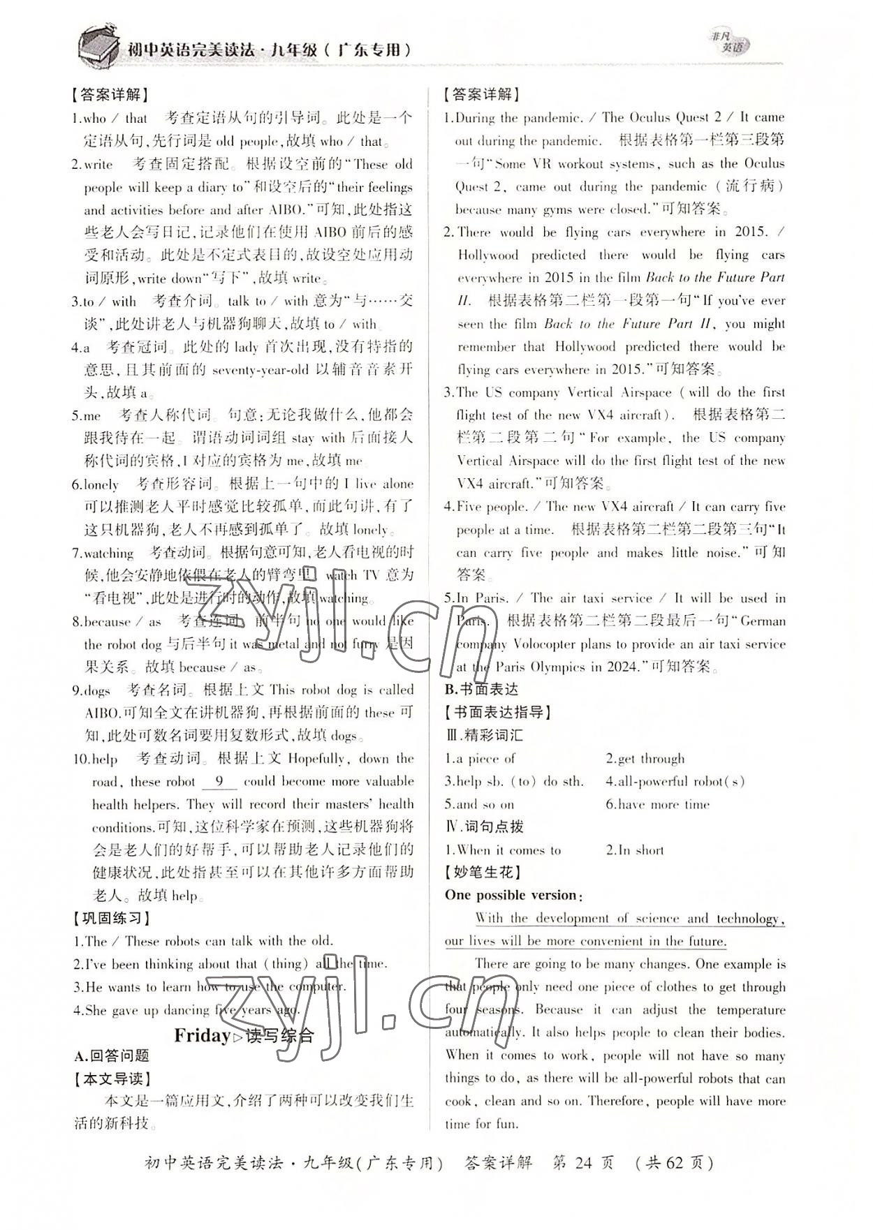 2022年完美读法九年级全一册广东专版