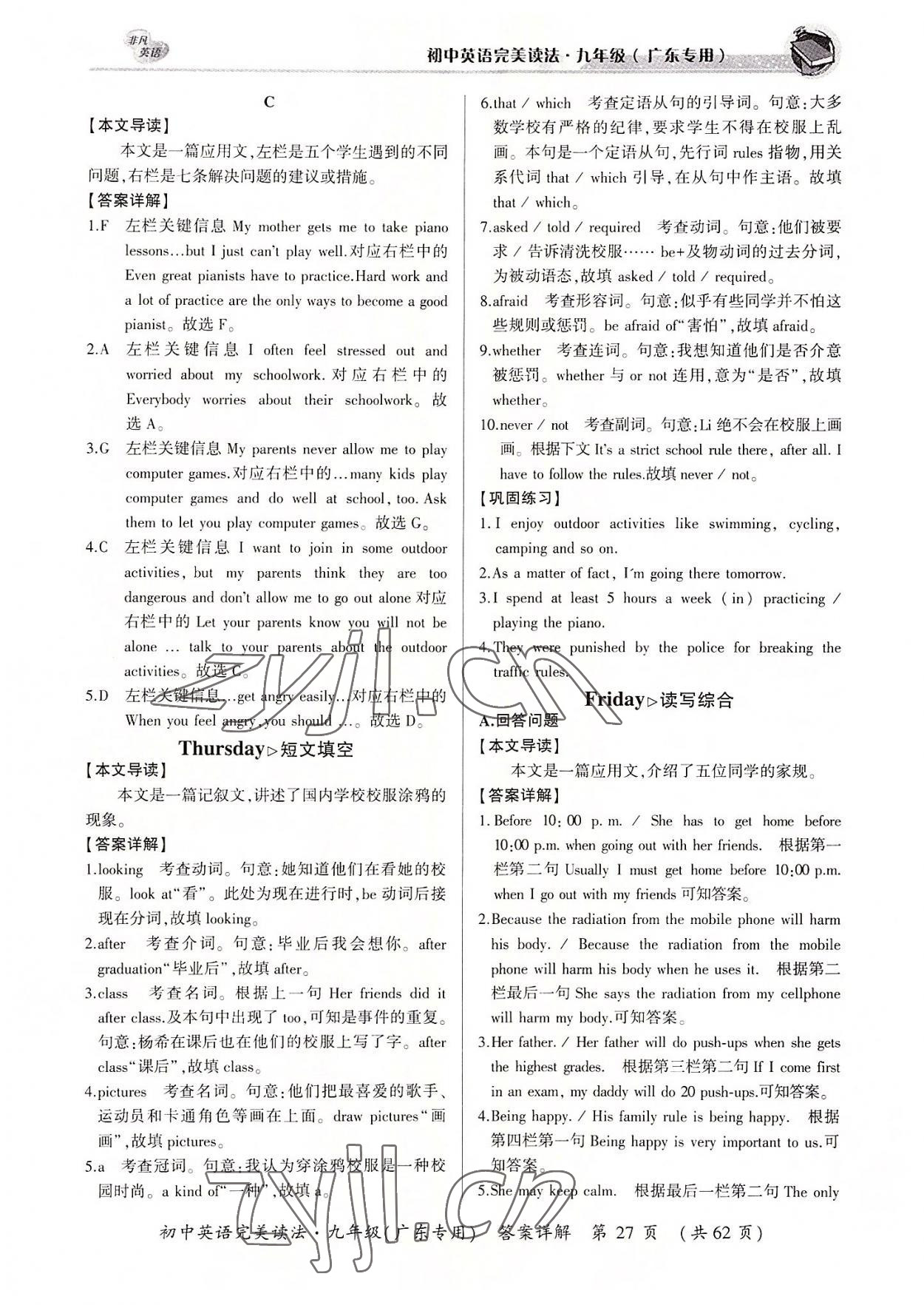 注:目前有些书本章节名称可能整理的还不是很完善,但都是按照顺序排列的,请同学们按照顺序仔细查找。练习册 2022年完美读法九年级全一册广东专版 答案主要是用来给同学们做完题方便对答案用的,请勿直接抄袭。