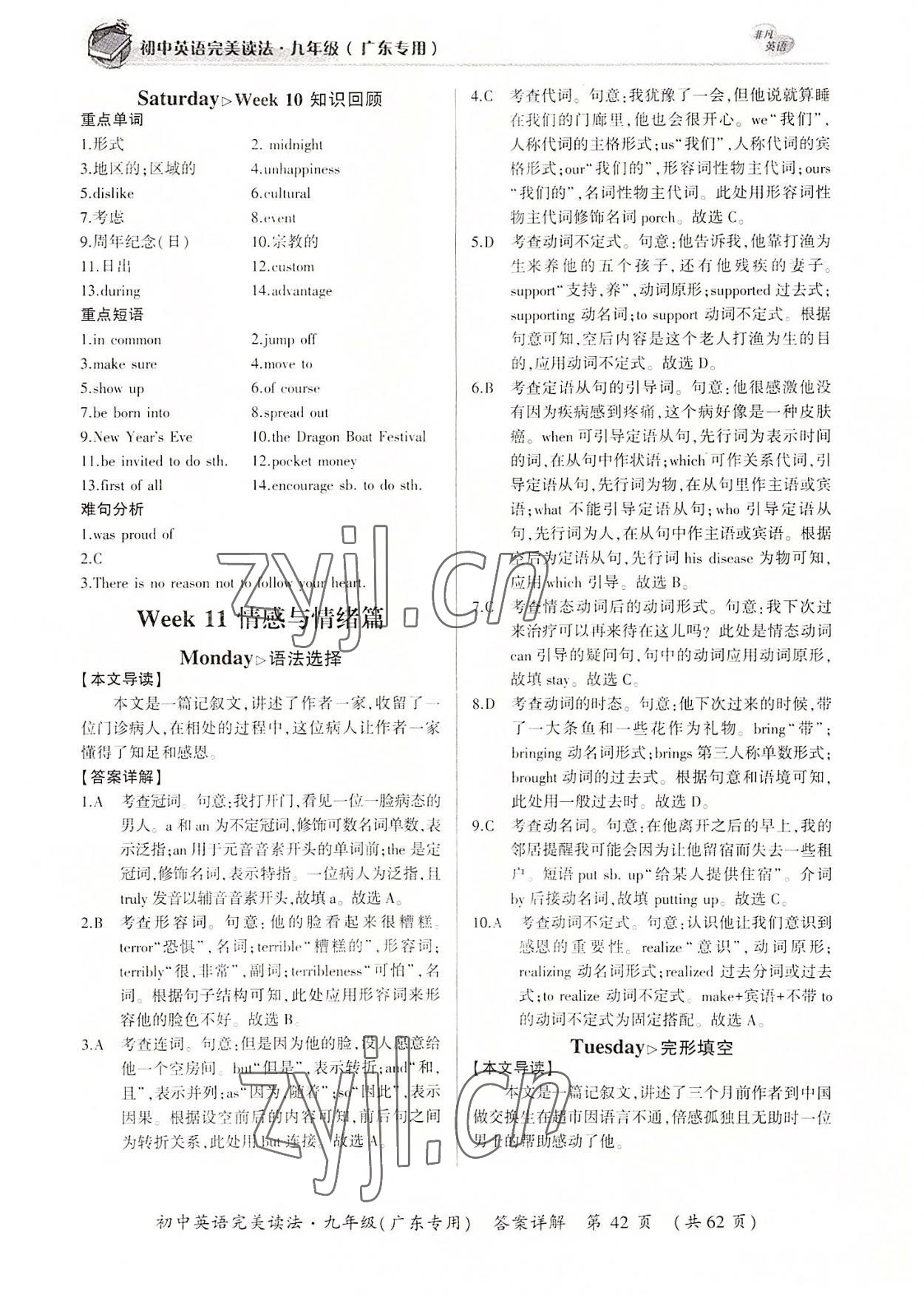 注:目前有些书本章节名称可能整理的还不是很完善,但都是按照顺序排列的,请同学们按照顺序仔细查找。练习册 2022年完美读法九年级全一册广东专版 答案主要是用来给同学们做完题方便对答案用的,请勿直接抄袭。