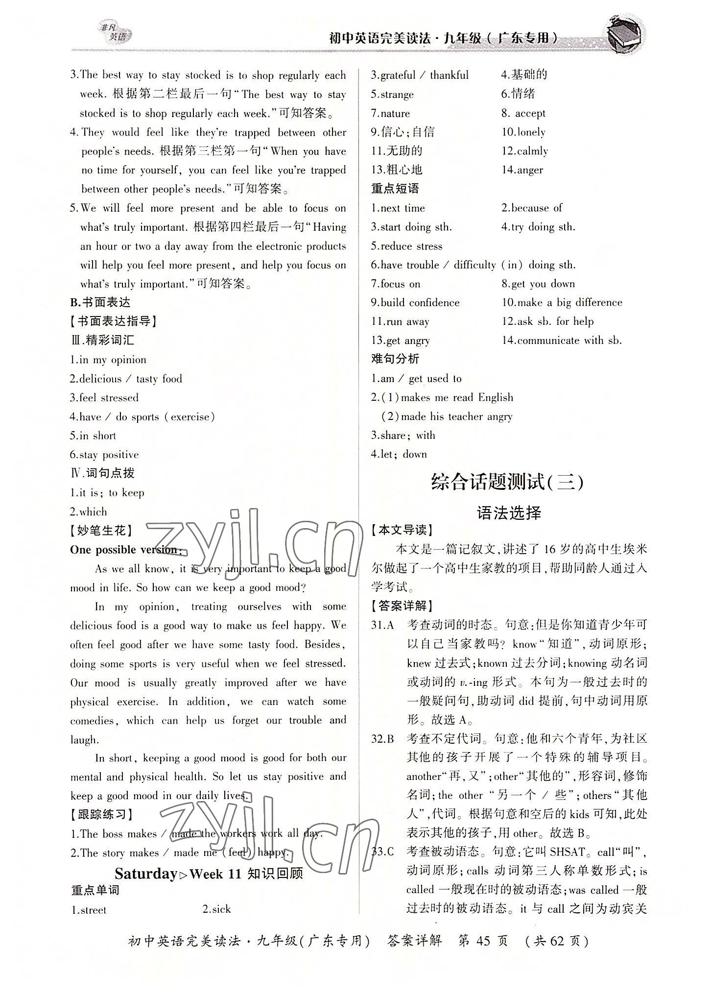 注:目前有些书本章节名称可能整理的还不是很完善,但都是按照顺序排列的,请同学们按照顺序仔细查找。练习册 2022年完美读法九年级全一册广东专版 答案主要是用来给同学们做完题方便对答案用的,请勿直接抄袭。
