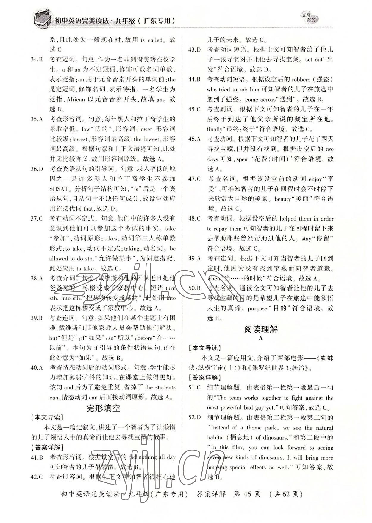 2022年完美读法九年级全一册广东专版