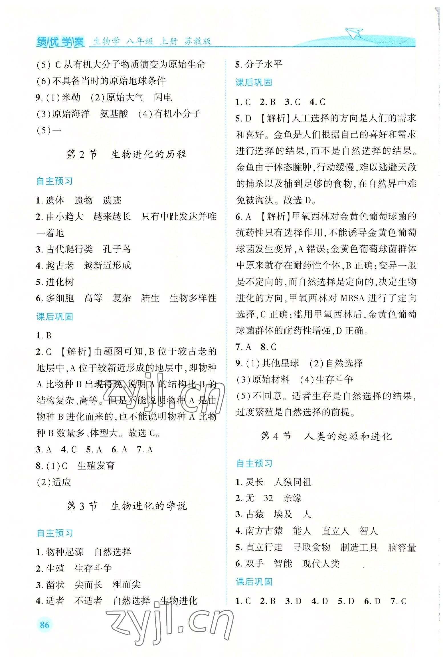 注:目前有些书本章节名称可能整理的还不是很完善,但都是按照顺序排列的,请同学们按照顺序仔细查找。练习册 2022年绩优学案八年级生物上册苏教版 答案主要是用来给同学们做完题方便对答案用的,请勿直接抄袭。