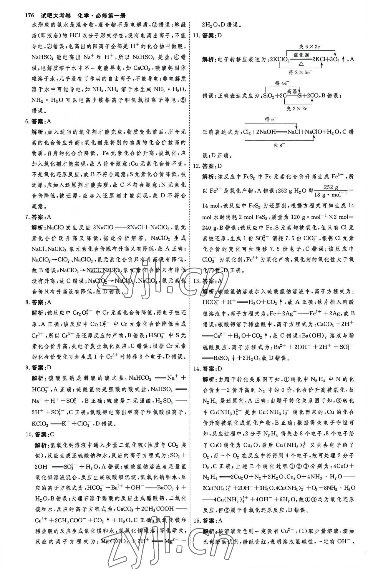 注:目前有些书本章节名称可能整理的还不是很完善,但都是按照顺序排列的,请同学们按照顺序仔细查找。练习册 2022年试吧大考卷45分钟课时作业与单元测试卷高中化学必修第一册人教版 答案主要是用来给同学们做完题方便对答案用的,请勿直接抄袭。